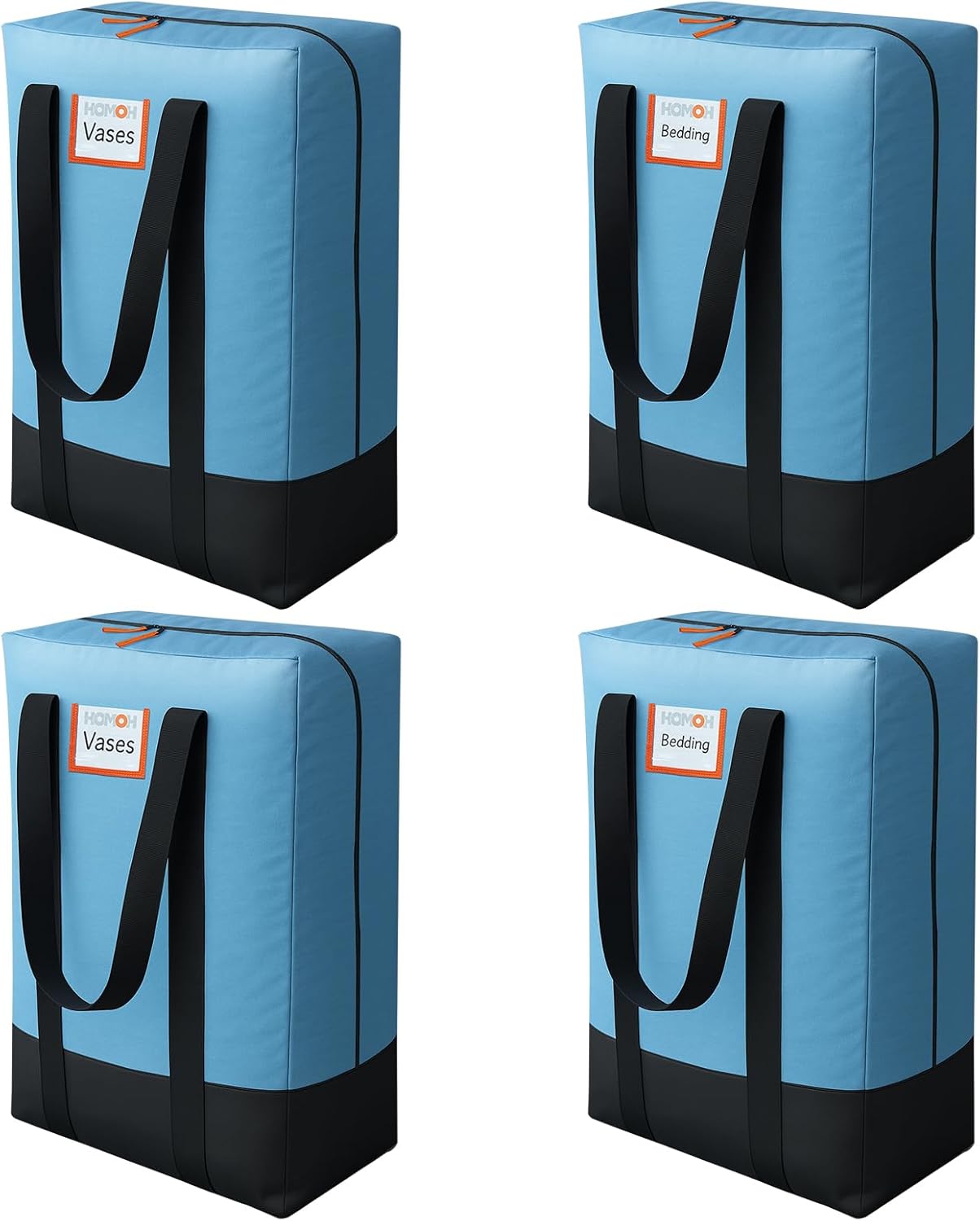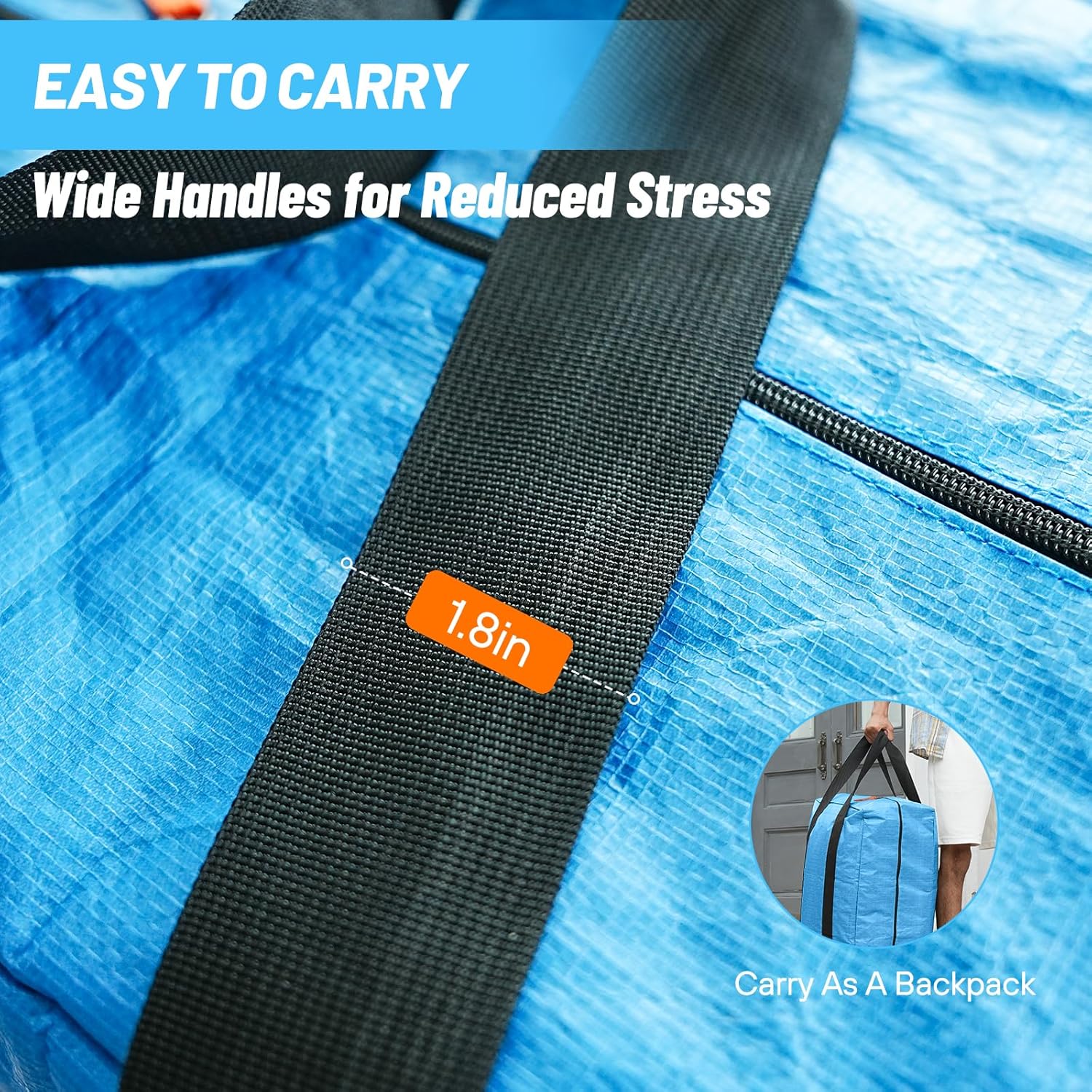 4 Pack Packing Bags for Moving, Storage Bags with Internal Compression Straps, Heavy Duty Moving Totes with Wrap Around Handles, Alternative to Moving Boxes, Blue and Black