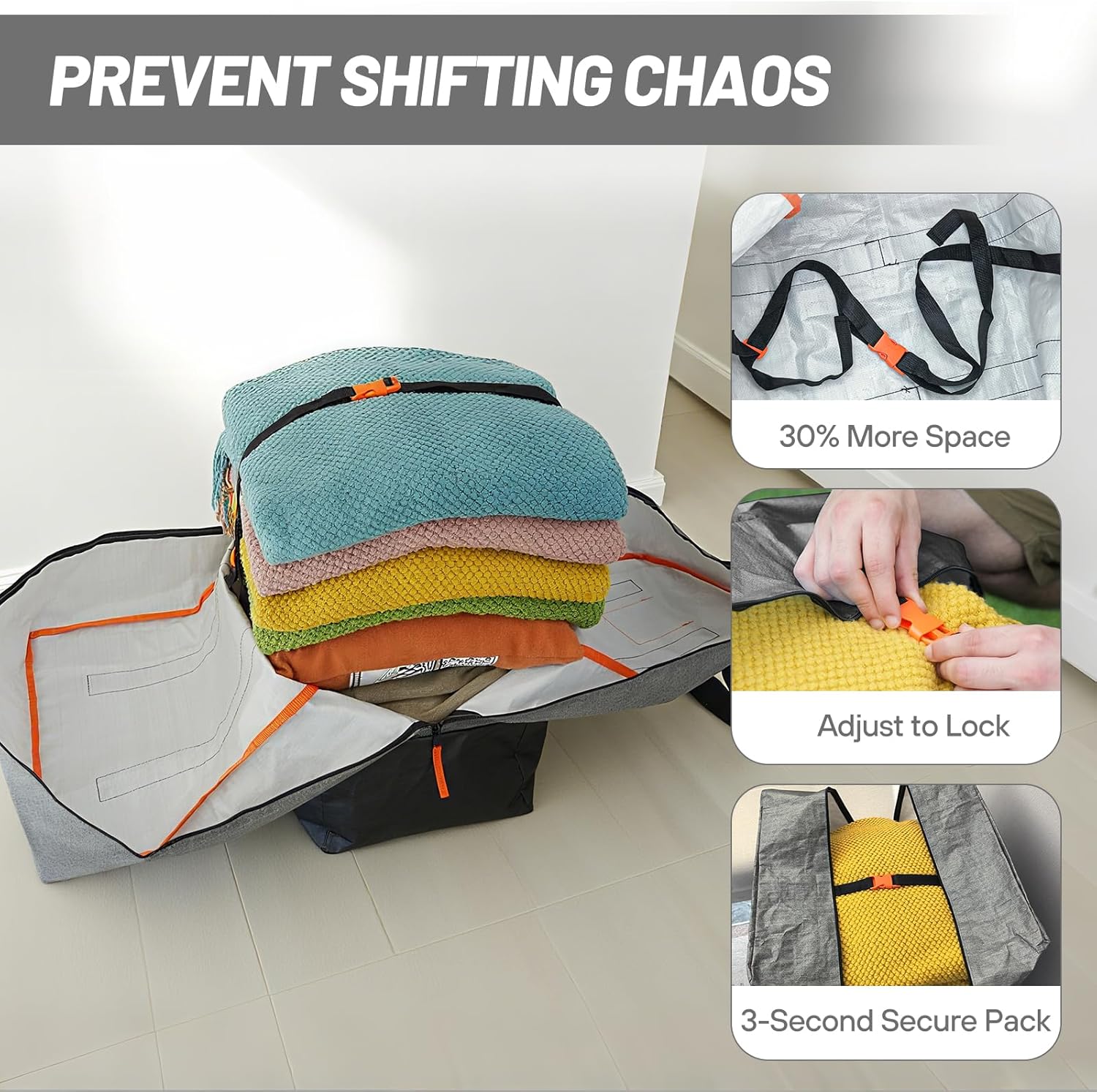 4 Pack Moving Bags Heavy Duty, Storage Bags for Clothes, Large Packing Tote with Wrap Around Handles, Internal Compression Straps, Alternative to Moving Boxes, Grey and Black