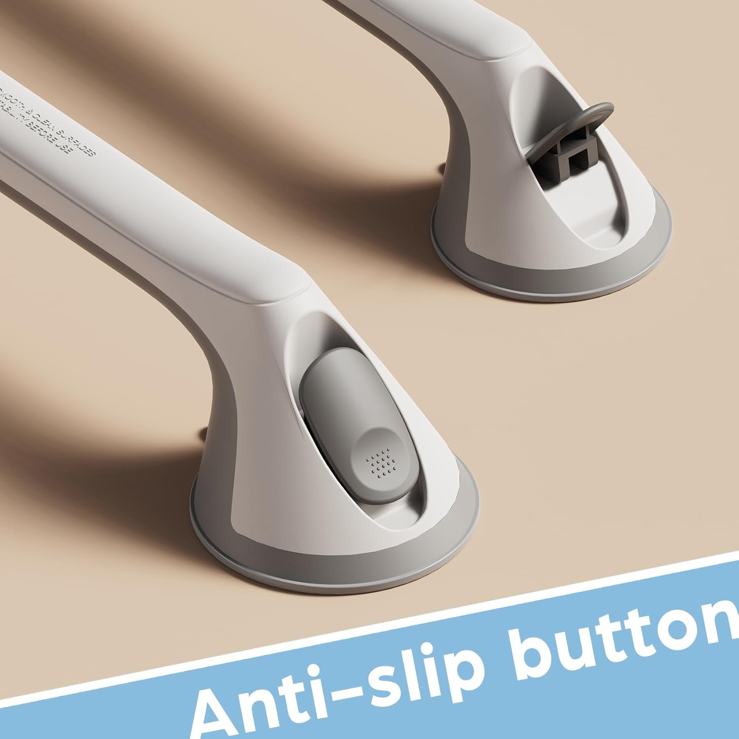 - IMPORTANT NOTE:Only suitable for tiles measuring 4×4 inches or larger. please pay attention that the suction grab bars for shower ONLY sticks on smooth and non-porous AIRTIGHT walls which are NOT air-permeable like metal, glass, tile, marble, stainless steel and acrylic but does NOT apply on uneven tile, wallpaper, dry wall, porous wall, painted wall,etc. Please don't put all the body on the shower grip,handicap grab bars are only used to assist and properly support part of body weight.