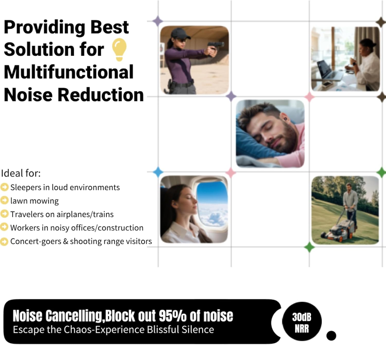 - Noise Cancelling Earplugs: Ultimate Sound Protectionā-Our advanced noise-cancelling technology effectively reduces a wide ārangeā of sounds, from loud concerts to airplane pressure and lawn mowing. Whether you're at work, traveling, or attending a shooting range, these āear protectorsā offer superior āsound blockingā capabilities, ensuring your ears stay protected and undisturbed.