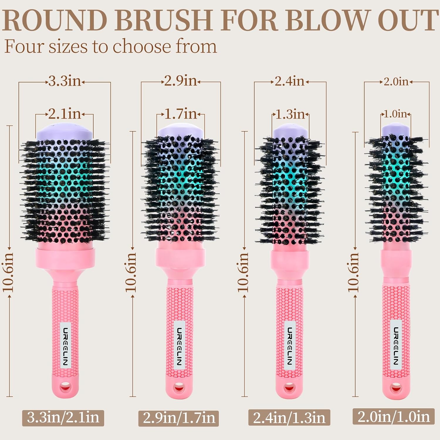Round Brush for Blow Out - 1.3 Inch Small Nano Thermal Ceramic & Ionic with Boar Bristles - Salon Blow Drying Hair Brush for Drying,Volumizing, Curling, Shine & Smooth Styling