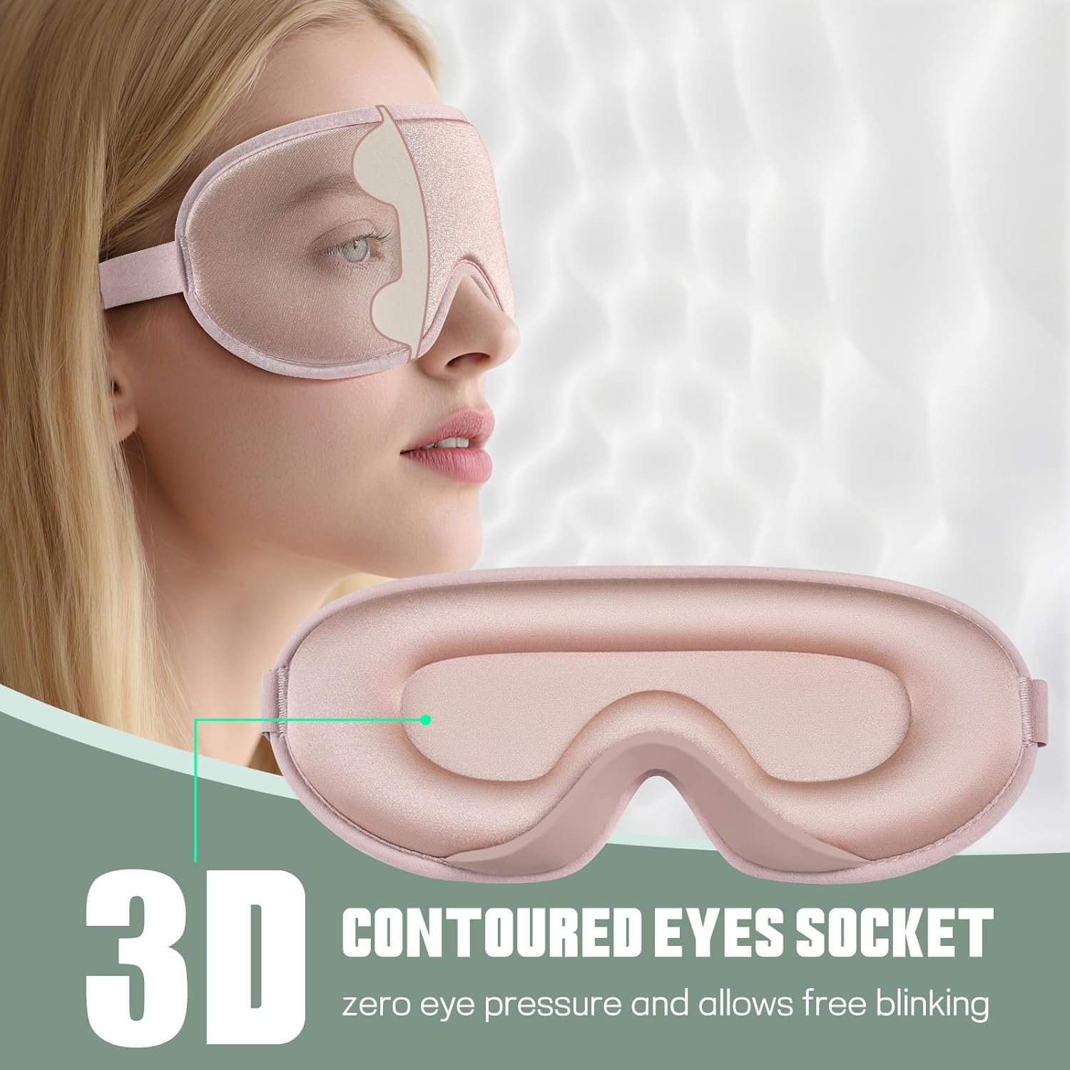 Sleep Mask for Side Sleeper Men Women | Zero Eye Pressure 3D, Light Blocking Design, Soft Breathable Eye Shade Cover for Travel, Pink