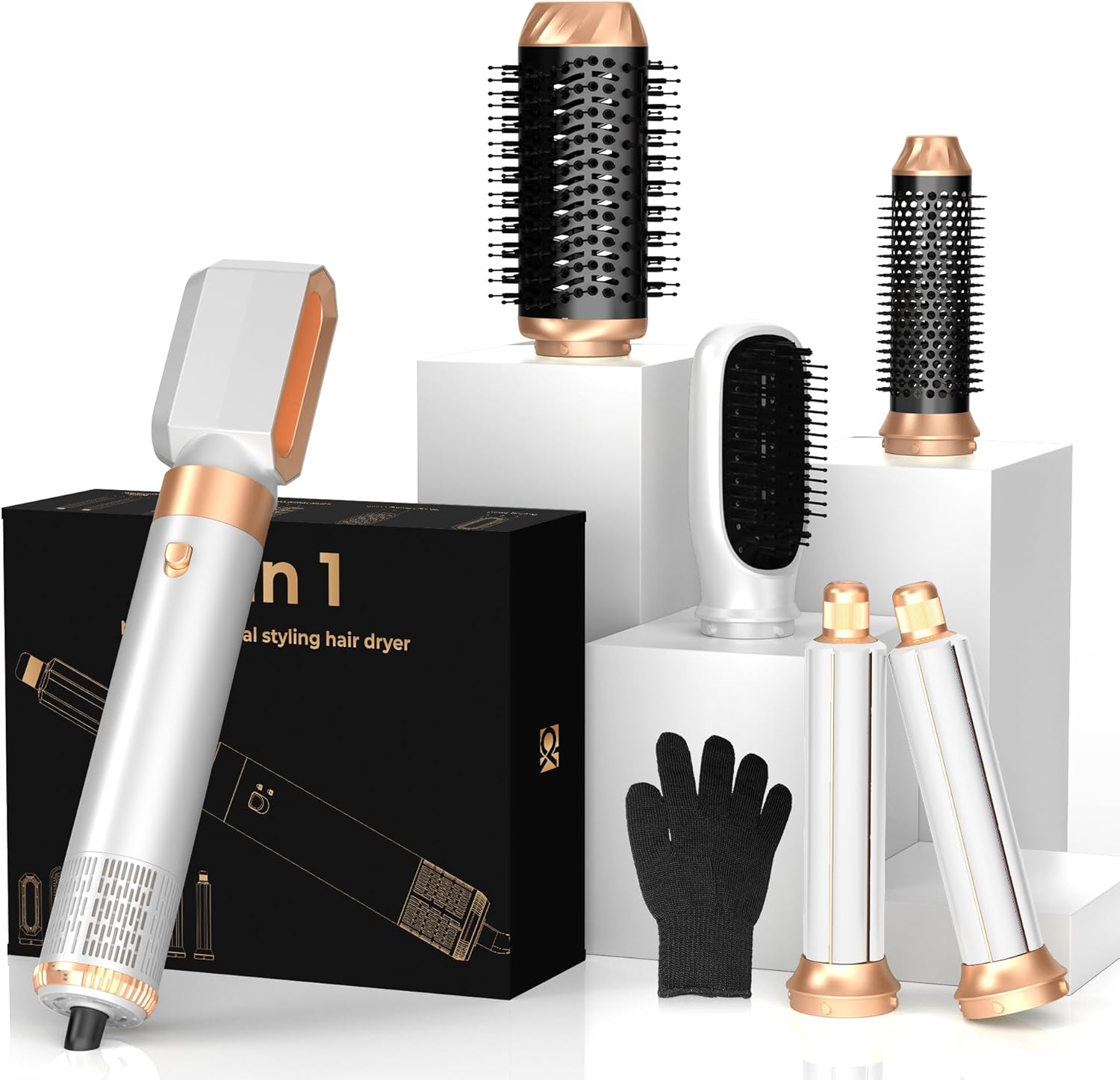 6 in ONE Hair Dryer Brush, Blow Dryer Curling Wand Hair Styling Tools Set, Ionic Hot Air Massage Oval Blowout Hair Dryer, Left&Right Hair Styler
