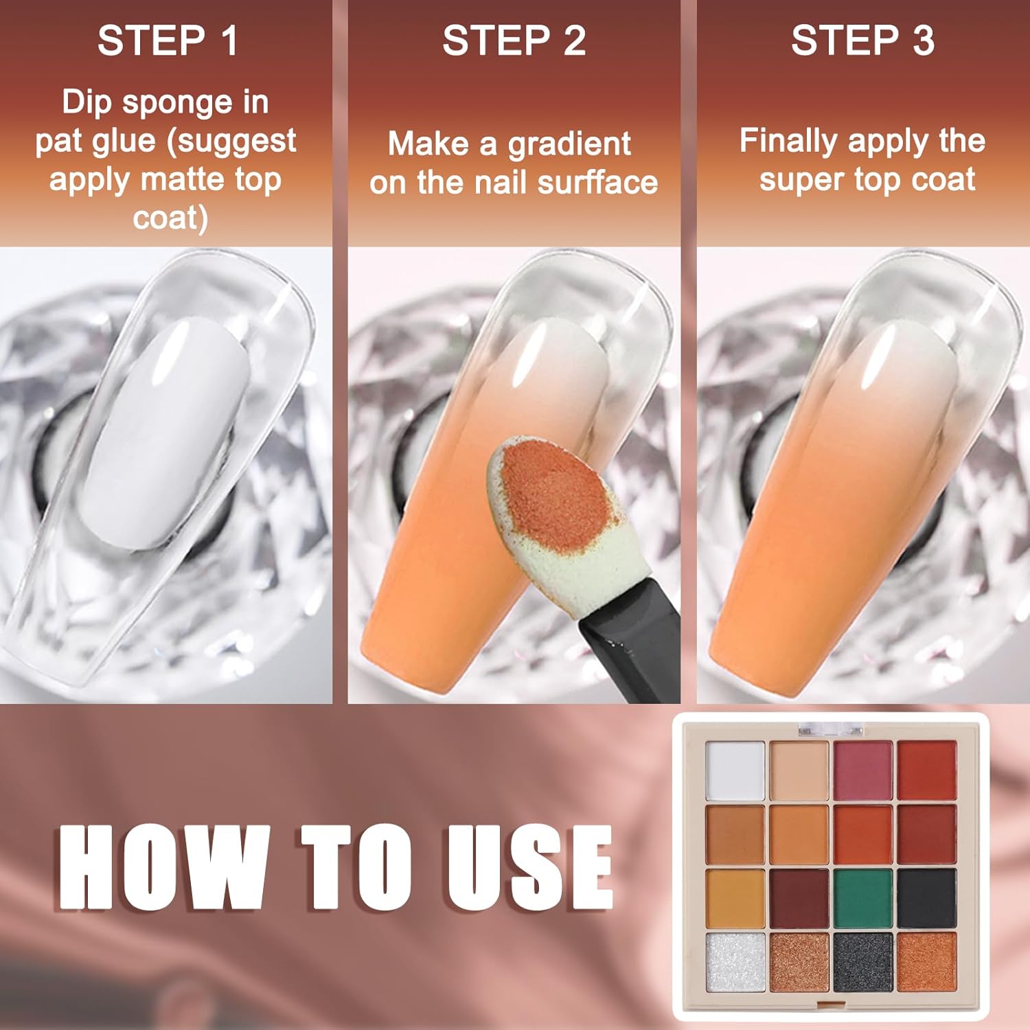 - 【Easy to Use and Remove】Simply apply the ombre nail powder onto a cured nail polish or gel base, seal it with a top coat, and enjoy stunning nails that will catch everyone's attention. When it's time for a new look, the powders can be easily removed with nail polish remover. Rub with a sponge stick will be easier to get amazing effect.