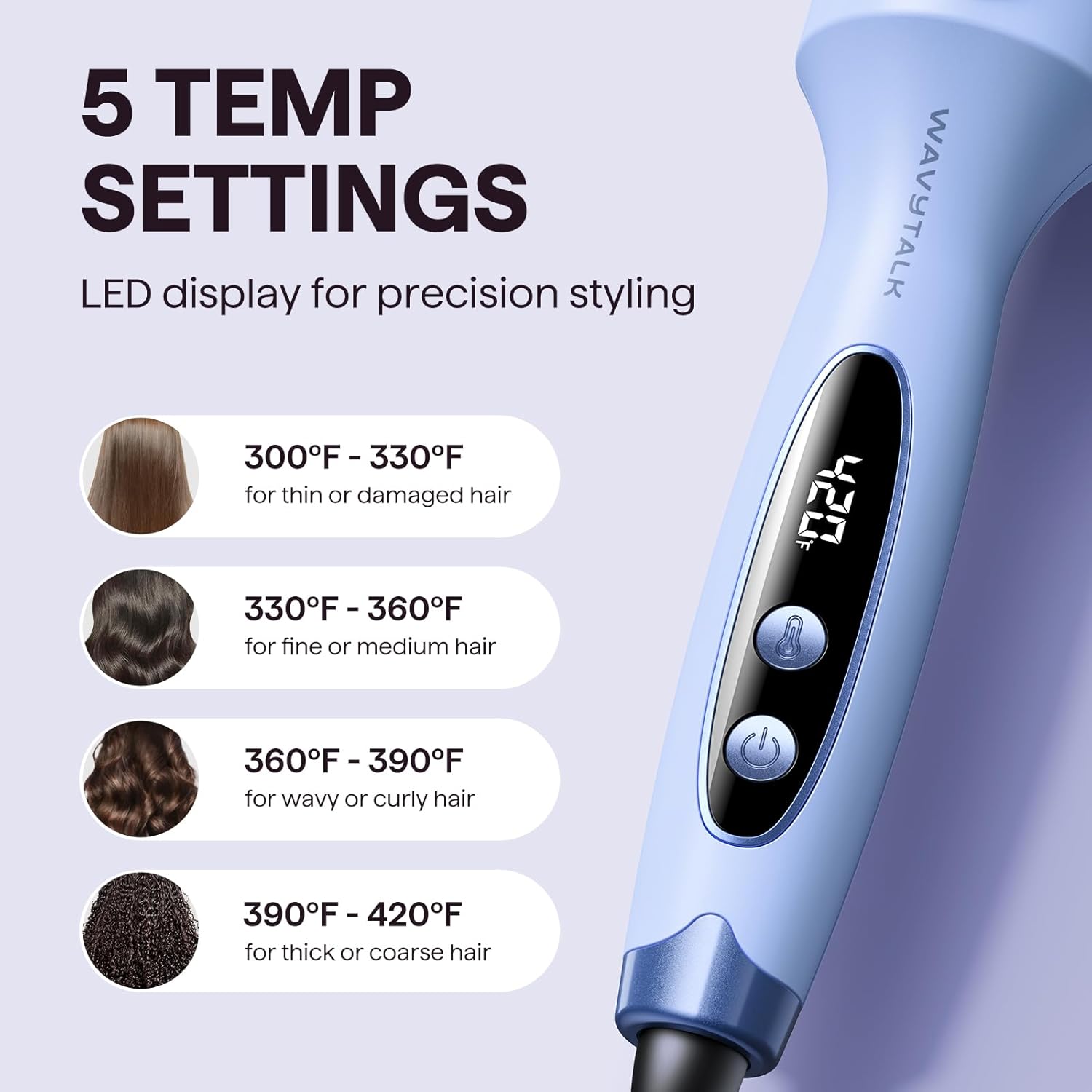 - 5 Temperature Settings & LED Digital Display: Wavytalk thermal round brush offers multiple temperature options, allowing better control during styling to achieve optimal results while minimizing heat damage. 300℉/330℉ for thin or damaged hair; 360℉ for normal hair; 390℉/420℉ for thick or coarse hair.