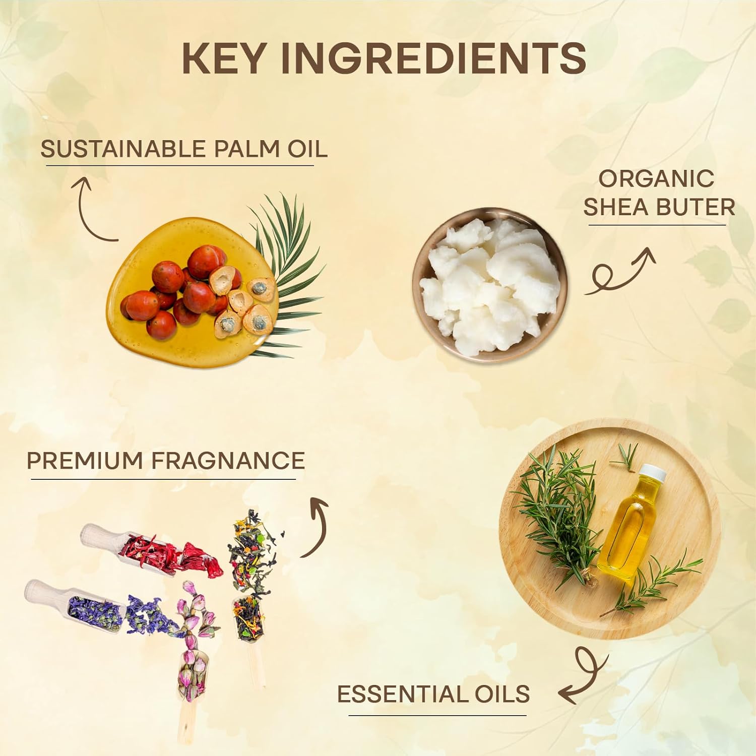 - 📋 Ingredients: Sustainable Palm oil, Palm Kernel Oil, Aqua (water), Certified Organic Shea Butter, Vegetable Glycerin, Essential Oils and/or Fragrance, Sodium Gluconate (natural sugar-based preservative), Sodium Chloride, Titanium Dioxide (food grade)