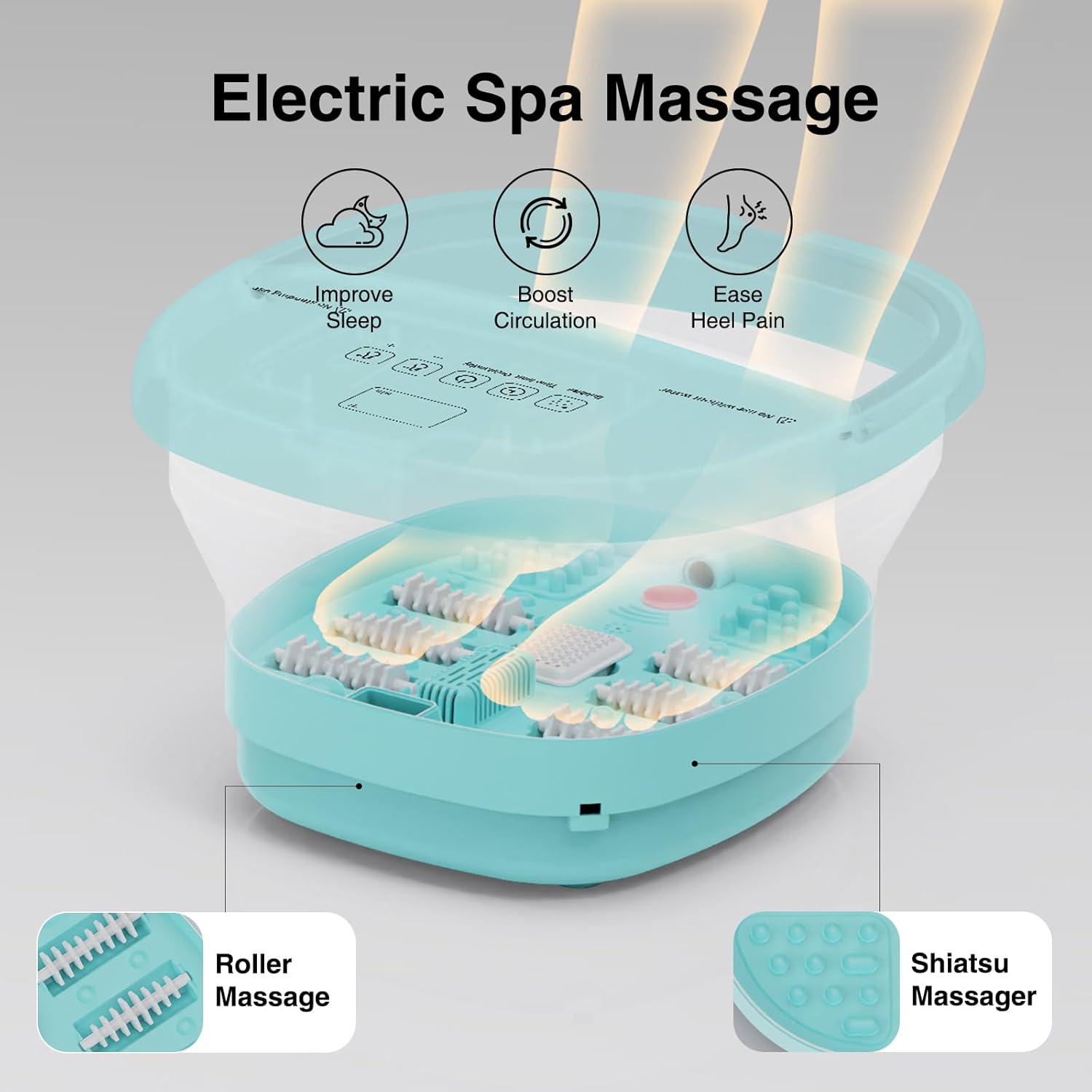 - Foldable Foot Bath–Space-Saving&Portable.The foldable design allows this pedicure foot spa with foot massager heating and bubble functions to be folded to only 6.1 inches thick in seconds,without the need for any tools,making it easy to store and saving space.It can fit into narrow corners,such as under the bed or in a closet.Lightweight and portable,this foot soaking tub is perfect for use at home,the office,or while traveling