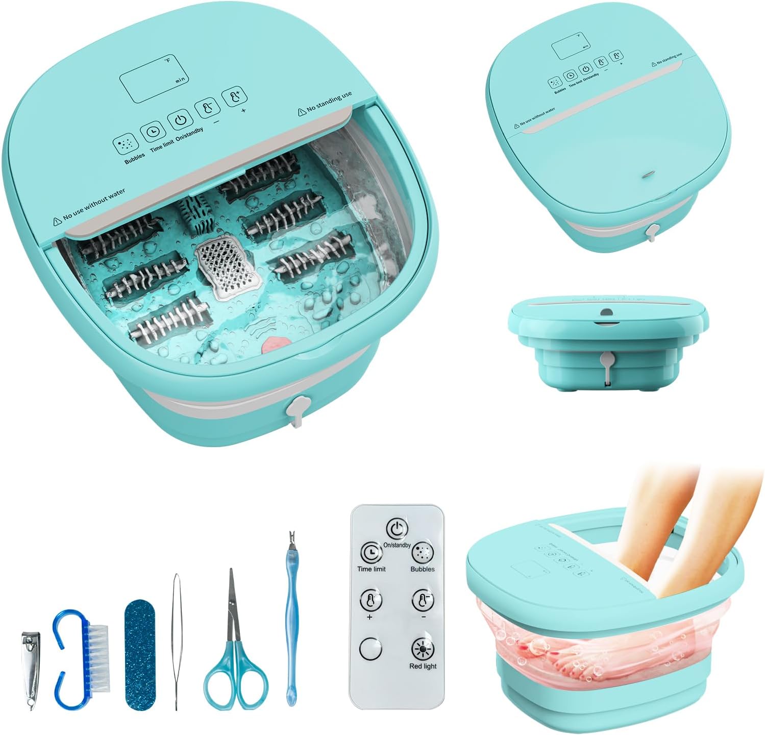 Pedicure Foot Spa with Bubble and Heat,Collapsible Foot Soaking Tub with Remote Control,Pedicure Tools for Feet,Foot Bath Soak Tub Gift for Women/Men,Mom/Dad