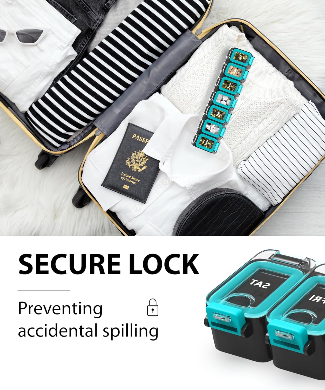 - Upgraded locking system – the pill box 7 day features reinforced individual latches that stay tightly closed to prevent spills. Designed for long-term durability without snapping or wearing out