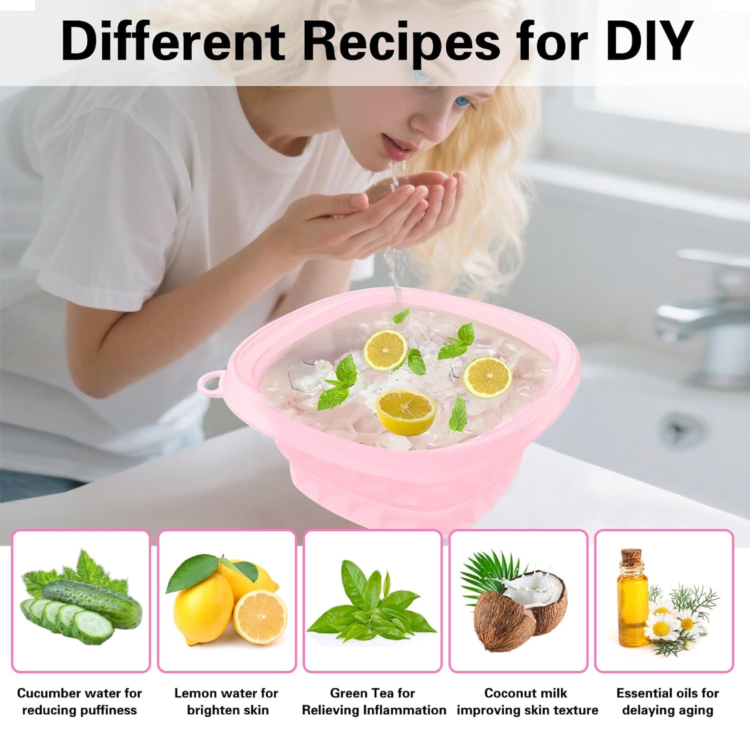 Face Bowl for Ice with Built-in IceTray,Collapsible Silicone Face Ice Bowl – Cold Plunge Therapy for Skin Tightening & Facial Treatment– Portable Spa Tool for Home & Travel(Pink)