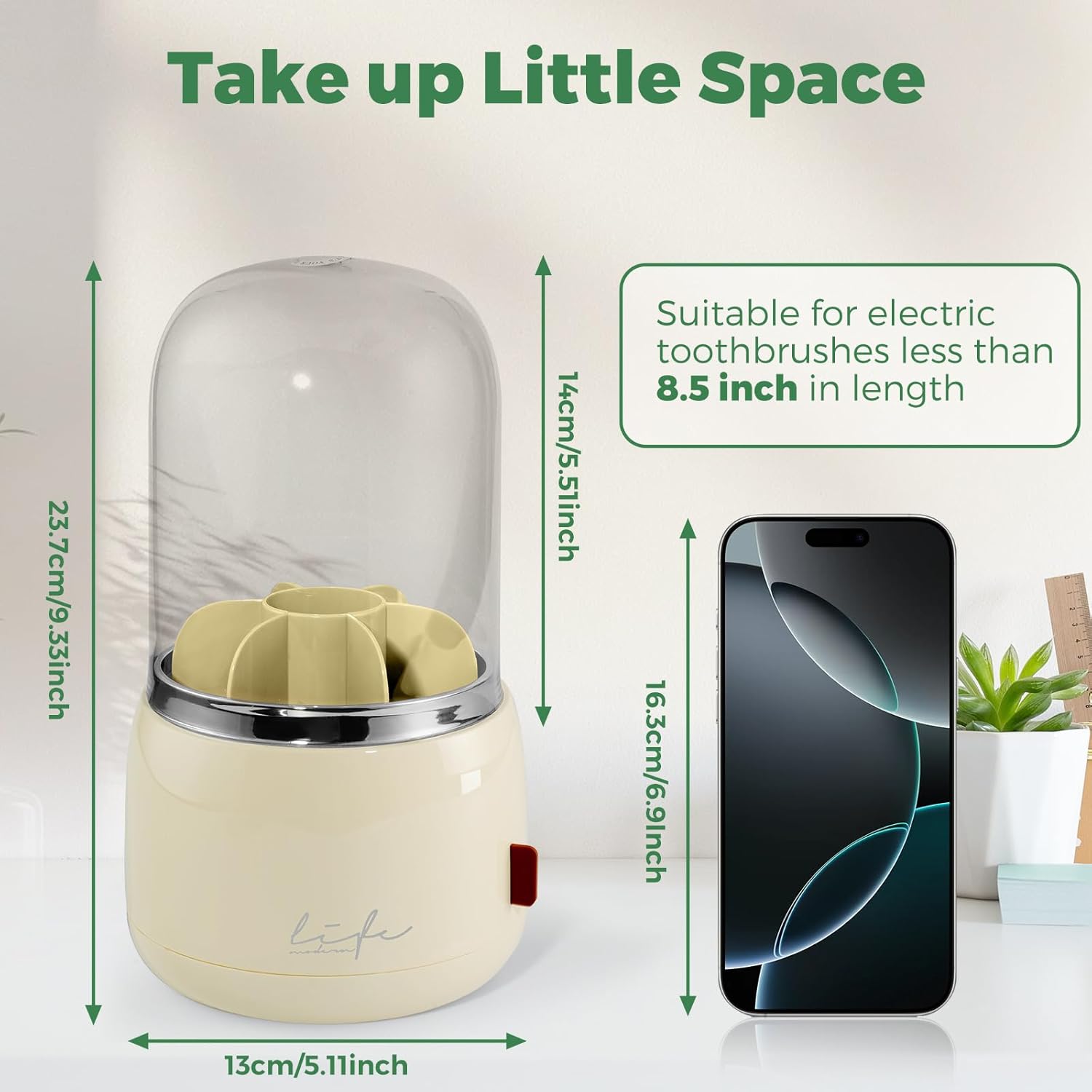 Toothbrush Holders for Bathrooms, Rotating 7 Slots Toothbrush Holder with Cover, Kids Electric Toothbrush and Toothpaste Holders for Caddy for Bathroom Vanity, Sink, Countertop, Beige