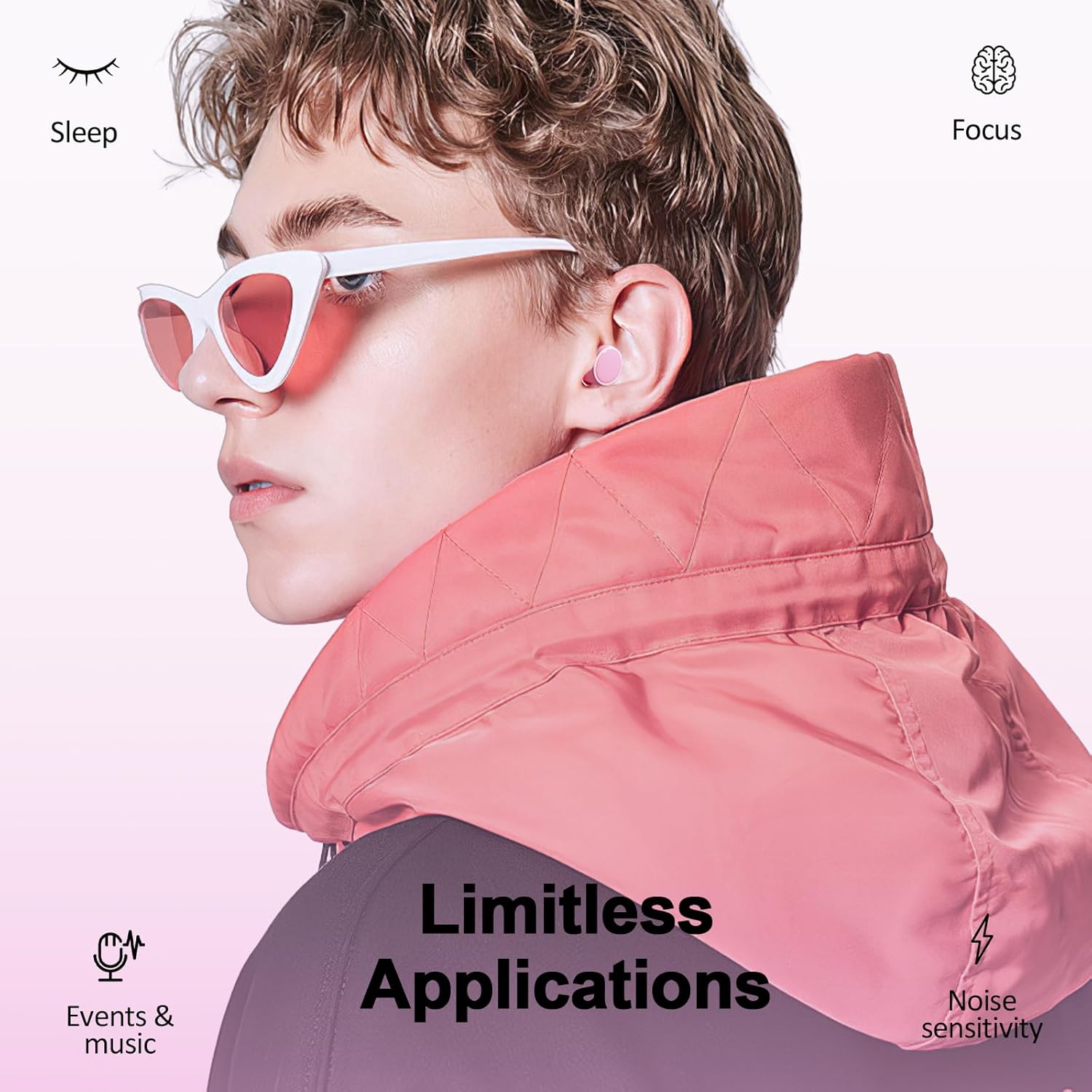 Ear Plugs for Sleeping 45dB Noise Cancelling Ear Plugs for Concerts, Focus, Travel, Work Silicone Hearing Protection Earplugs with 8 Tips (XS-L) Reusable Noise Reduction Ear Plug for Snoring Pink