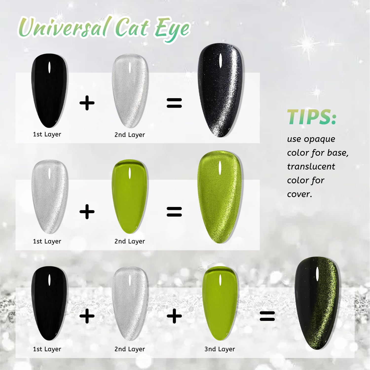 - Tips: For a cat eye effect, apply cat eye gel. If you have any questions about our products, please contact us and we will try our best to solve your problems.