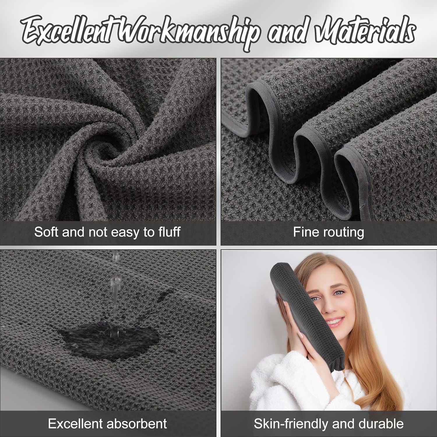 12 Pack Microfiber Bath Towels Bulk 27'' x 60'' Oversized Size Bath Towel Highly Absorbent Extra Large Soft Drying for Shower Beach Salon Winter Sport Spa Gym (Waffle,Grey)