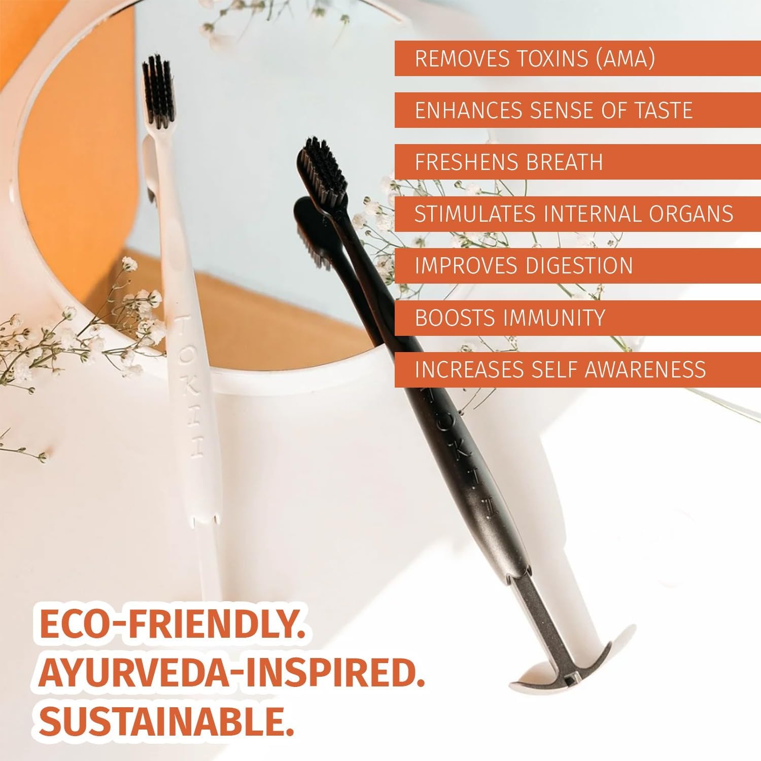 - Half-Moon Tongue Scraper Design: The uniquely crafted half-moon scraper glides smoothly across the tongue surface, removing buildup with just a few downward strokes. Designed to complement your natural oral motion.