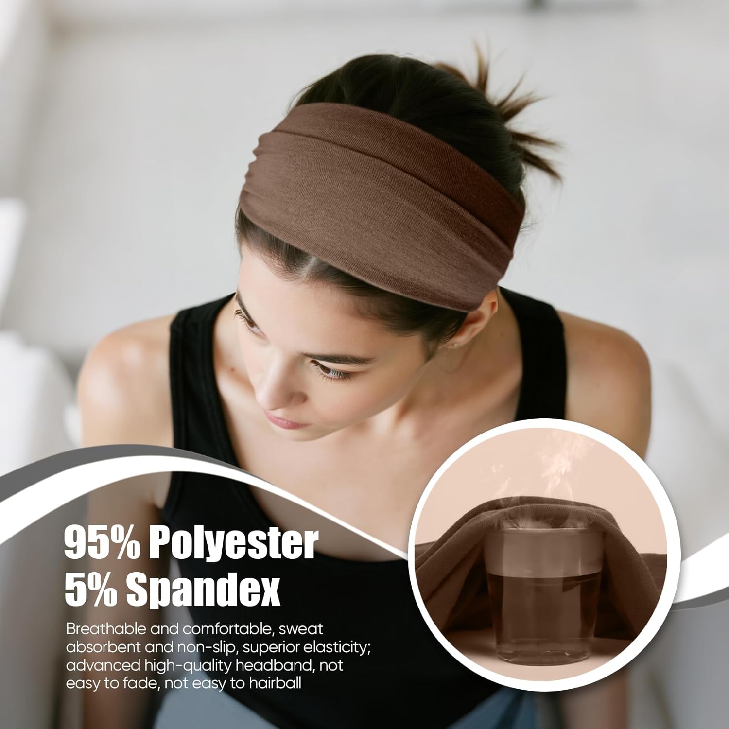 - 🧘 Non-Slip Comfort for Active Lifestyles: Features extra-wide (5.1 inches), thick knotted cotton fabric with 30% stretch (9.2in → 18in). Stays firmly in place during yoga, running, or gym workouts—say goodbye to constant adjustments and slippage
