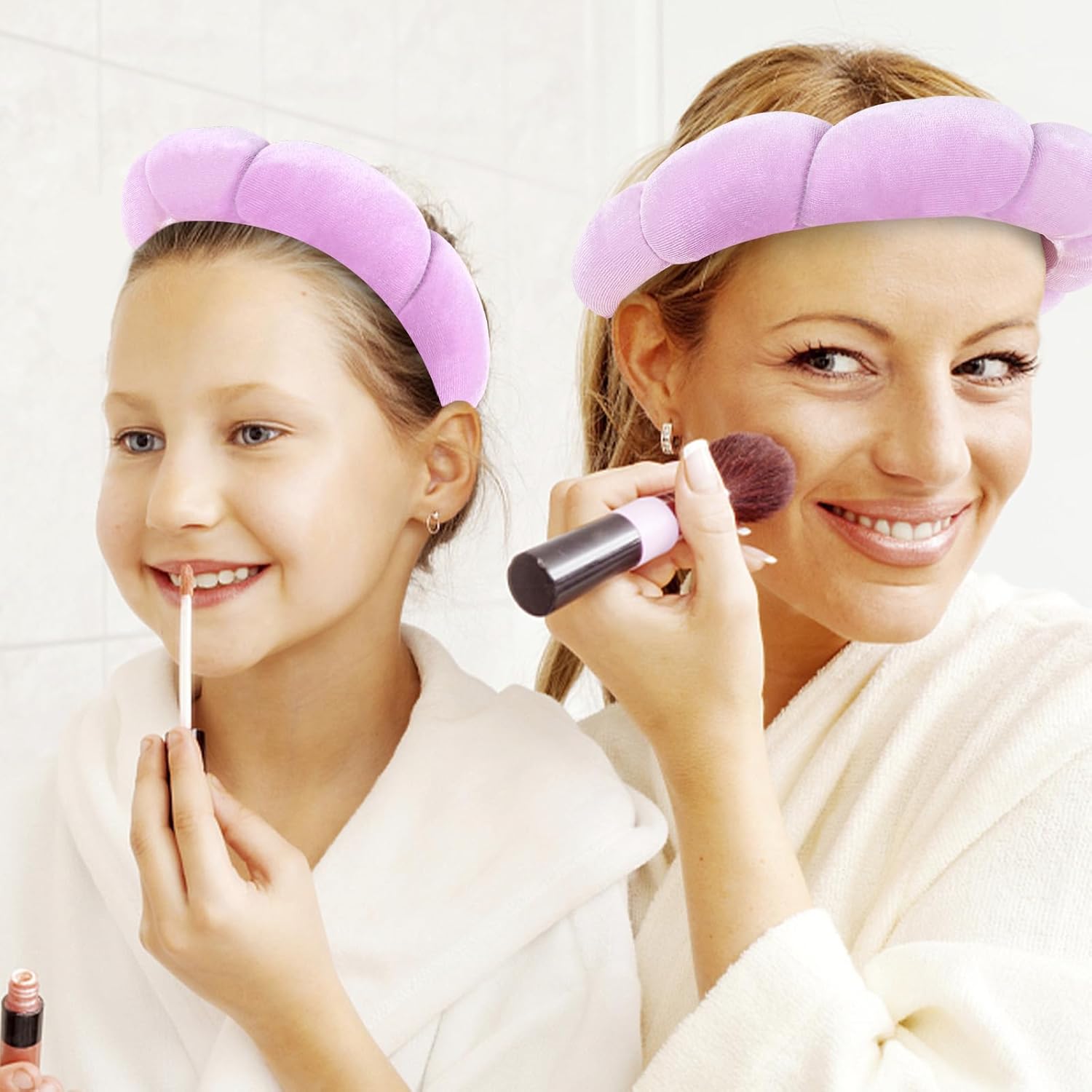 CAVETEE Spa Headband for Washing Face, Sink Care Headband for Women Sponge Bubble Makeup Head band for Women, Soft Velour Hair Accessoriesfor Girls (Purple, one size)
