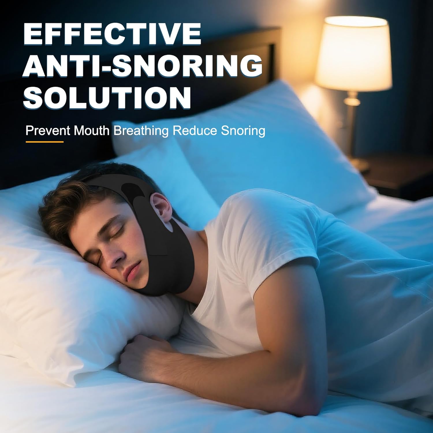 Chin Strap for Sleeping, Adjustable Chin Strap for Snoring, Anti Snoring Devices Breathable and Reusable, Comfortable Stop Snoring Solution, Anti Snore Chin Strap for Men and Women (Black)