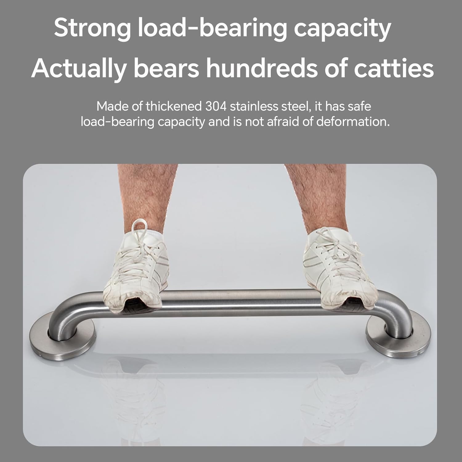 - PREMIUM CONSTRUCTION Crafted from heavy-duty 304 stainless steel, our bathroom safety grab bars are completely waterproof, rust-resistant, and built to last. With a remarkable 500-pound weight capacity, they provide essential stability for seniors, post-surgery patients, and anyone needing extra support - transforming your bathroom into a safer space.