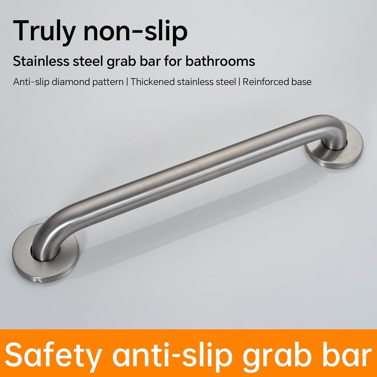 - ULTIMATE NON-SLIP PERFORMANCE Unlike ordinary smooth metal bars, our innovative grab bar features a deeply textured knurled surface pattern. This advanced grip technology ensures maximum traction even when wet, giving users confident control during showers or when standing from seated positions.