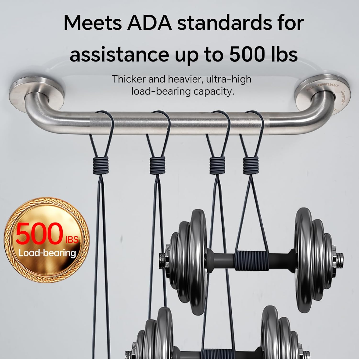 - PREMIUM CONSTRUCTION Crafted from heavy-duty 304 stainless steel, our bathroom safety grab bars are completely waterproof, rust-resistant, and built to last. With a remarkable 500-pound weight capacity, they provide essential stability for seniors, post-surgery patients, and anyone needing extra support - transforming your bathroom into a safer space.