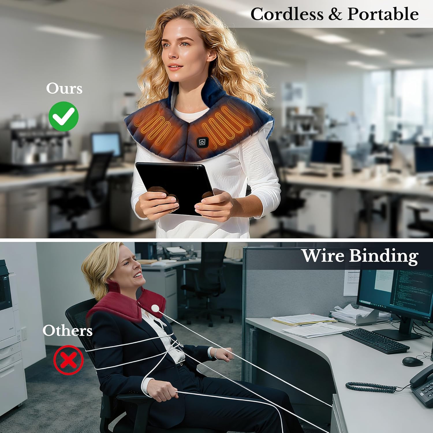 - 【Wireless & Portable for On-the-Go Relief】Say goodbye to messy cords. Our heating pad is powered by a 15,000mAh power bank, allowing you to enjoy cordless warmth whether at home, at work, or outdoors. Switch between wireless (power bank) or wired (include a adapter) depending on your needs. Great for easing muscle pain caused by work, workouts, housework, or aging."