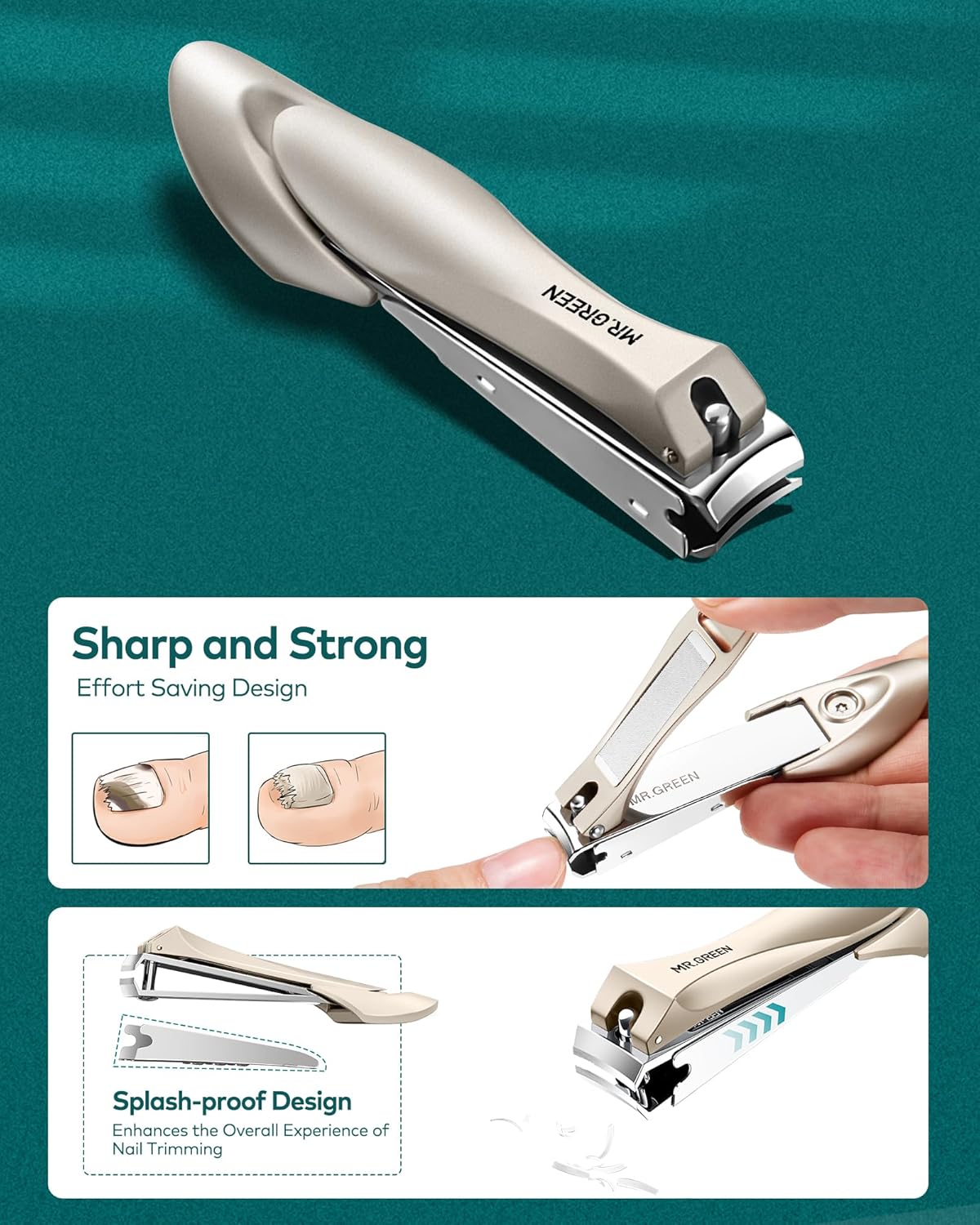 - Splash-Proof Nail Clippers: Nail clippers features an innovative splash-proof cover to catch nail clippings, keeping your nail trimming kit clean and hygienic. No more flying debris or messy cleanups during your manicure routine.