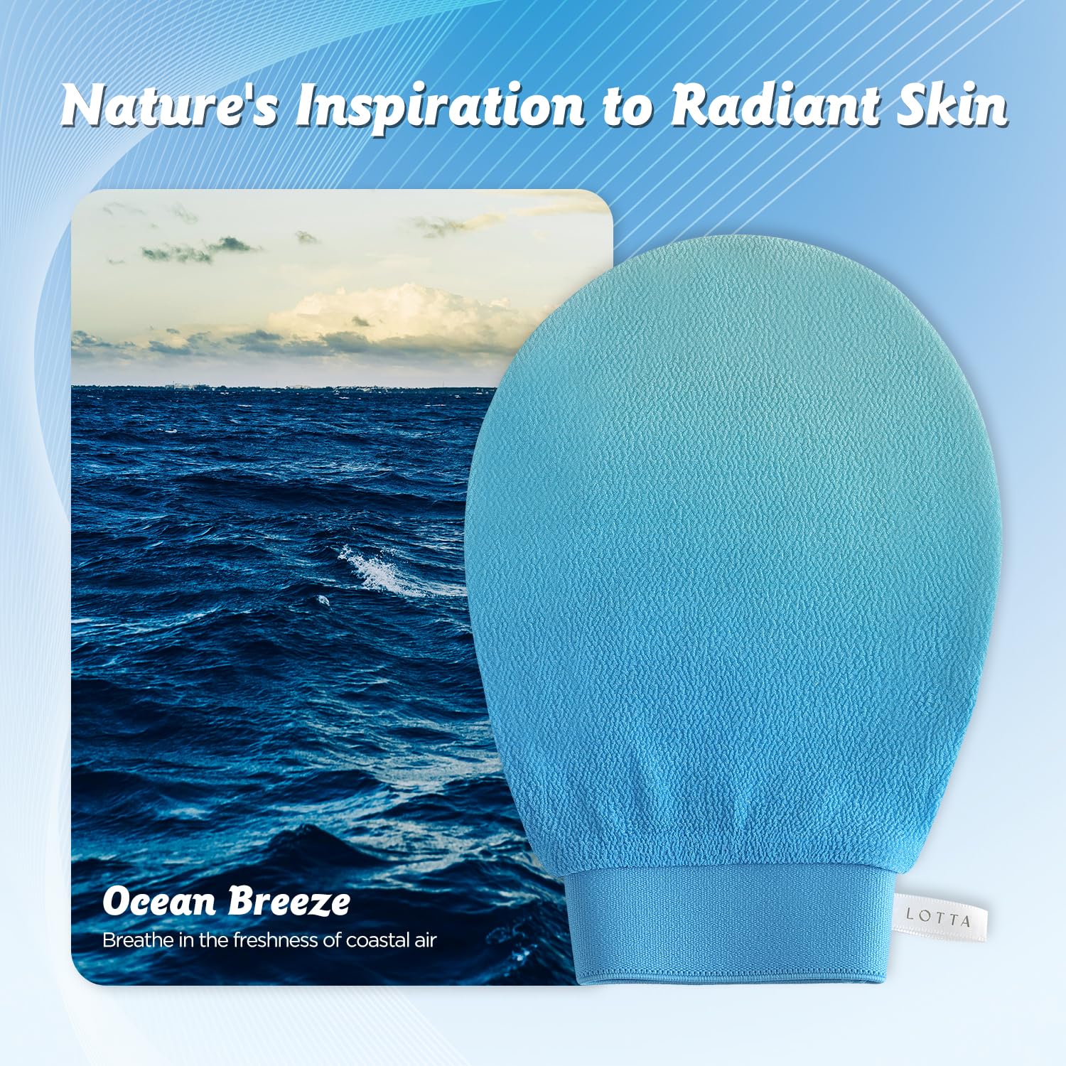 LOTTA Dreamy-Glow Deep Exfoliating Glove - Vegan Dead Skin Removal Body Scrub Mitt Bath Washcloth for Women Shower Exfoliation (Ocean Breeze)