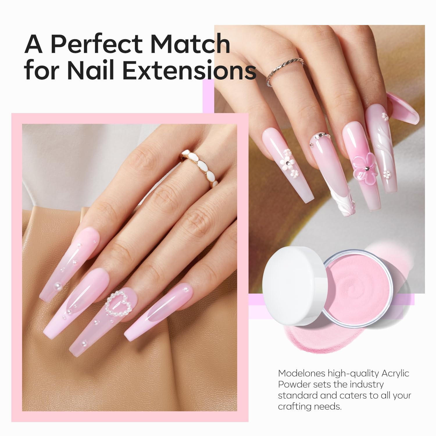 - Versatile Large-Capacity Acrylic Powder: Modelones nail acrylic powder is large capacity 120 g/4.23 oz. It works with acrylic liquid, acrlic brush. Easily adapting to French manicure, acrylic nails, carving, nail extensions and various nail decorations. It's an essential item in nail art supplies, meeting diverse nail art creation needs
