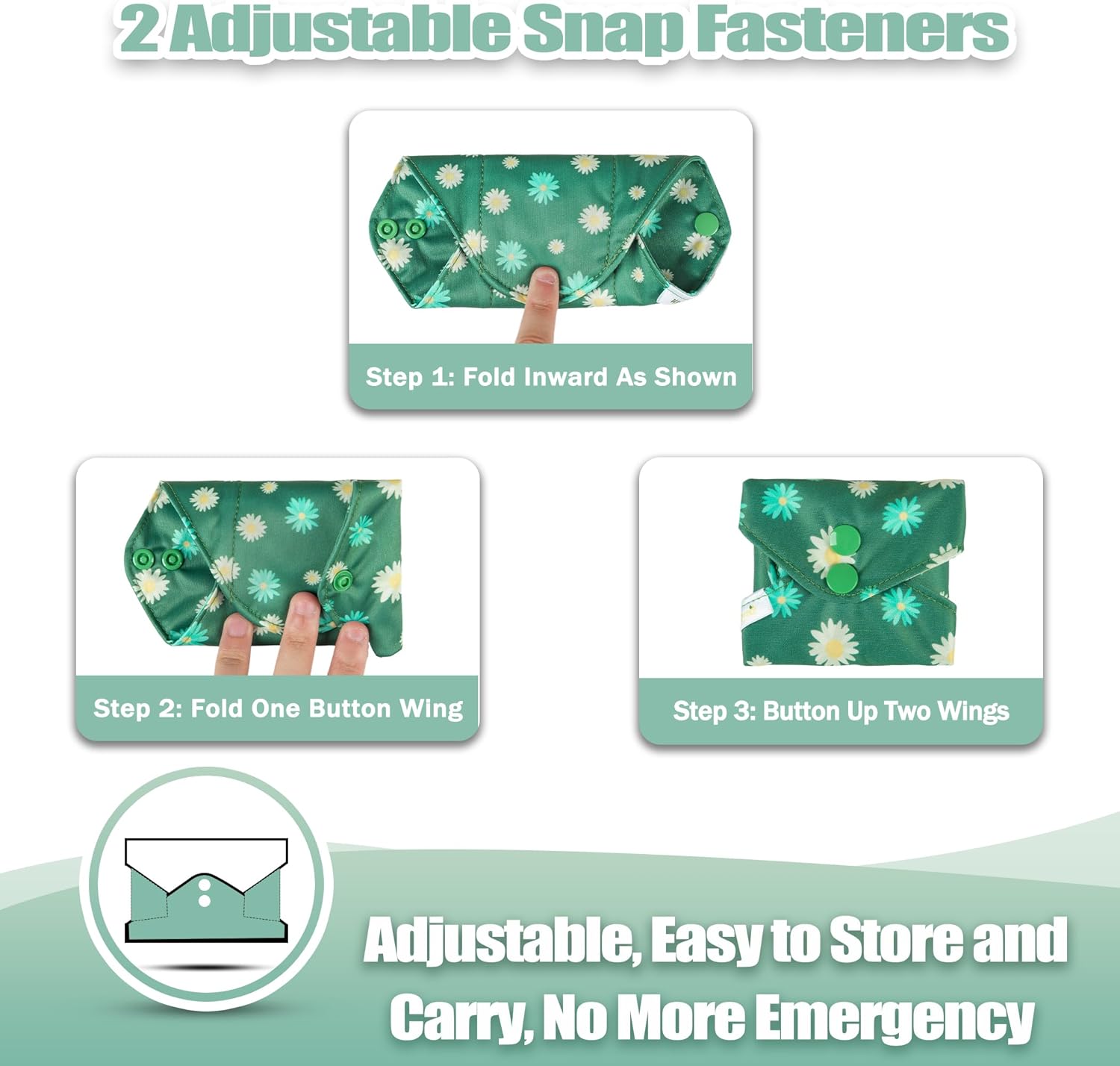 - TWO SNAPS DESIGN for better fasten the pads around your underwear and make it more security; Change pad every 2-6 hours or as needed