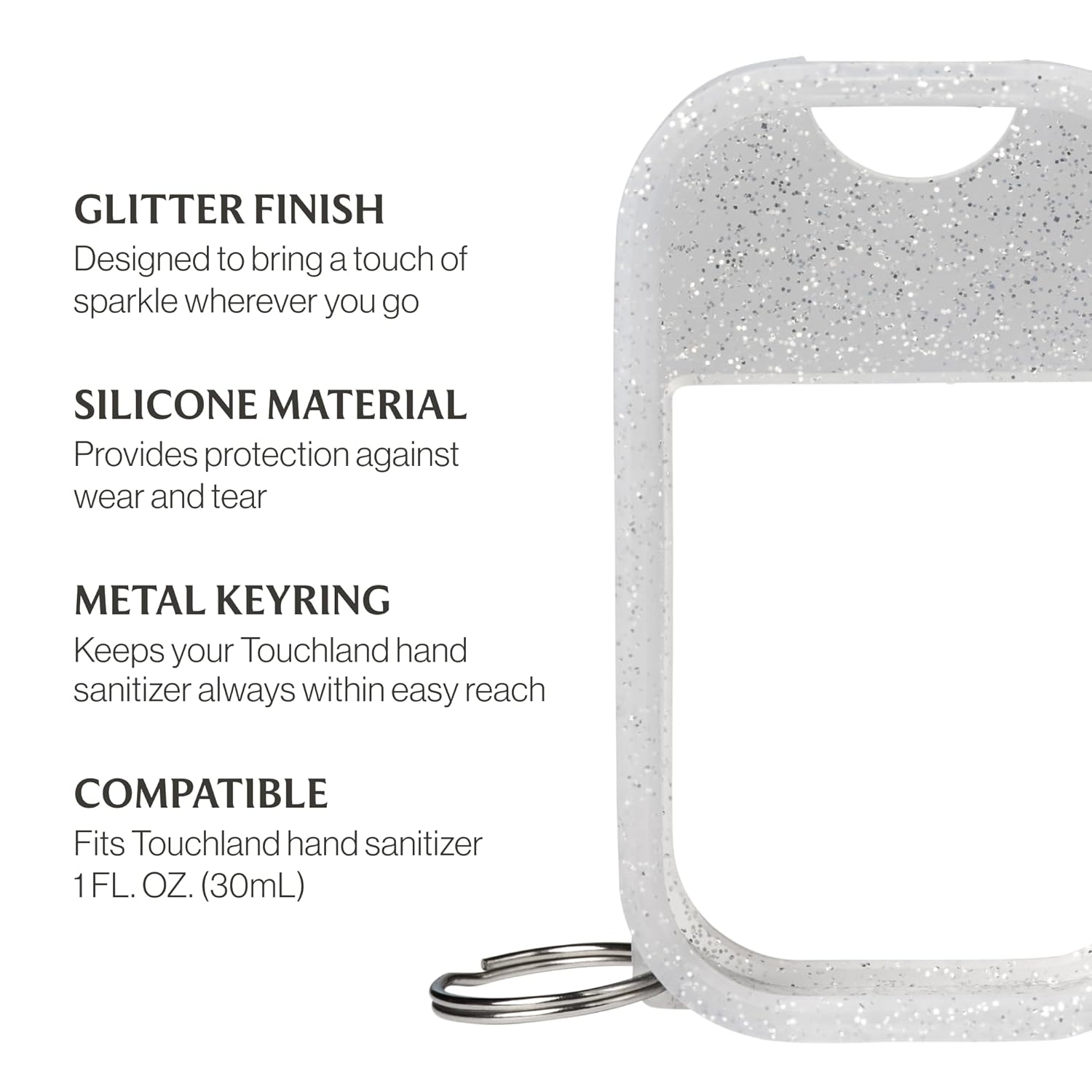 - SPARKLY BAG CHARM: The Frosted Sparkle Mist Case shines with a silver-glitter finish and sleek metal keyring. Whether clipped to your bag or shimmering on your keys, this bag charm is designed to bring a touch of sparkle wherever you go.