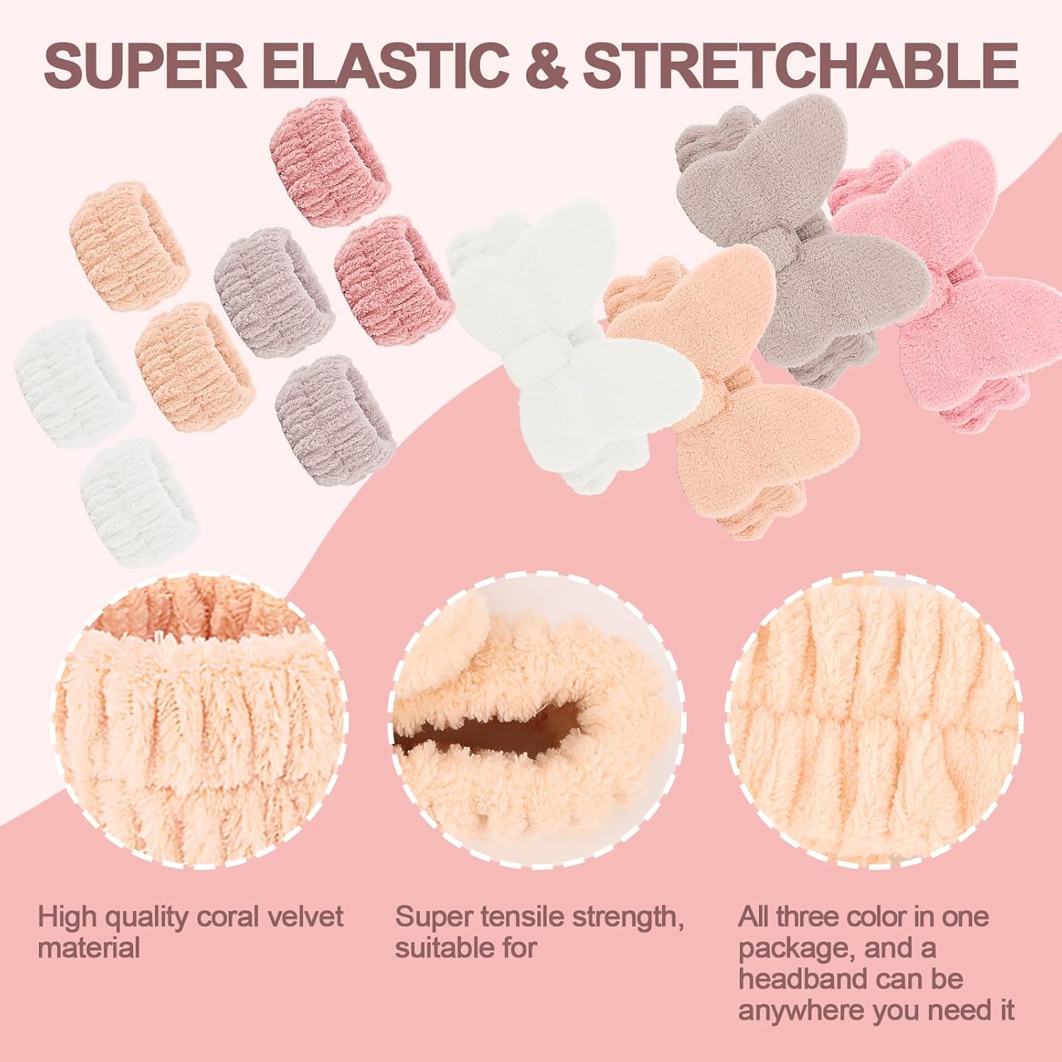 - 【Beautiful Spa Headbands and Wristbands Set】You will receive 4 soft and fluffy flannel fleece bow headbands and 8 super absorbent wristbands. A practical combination for girls and women to apply in everyday life, you can also share it with your friends or families