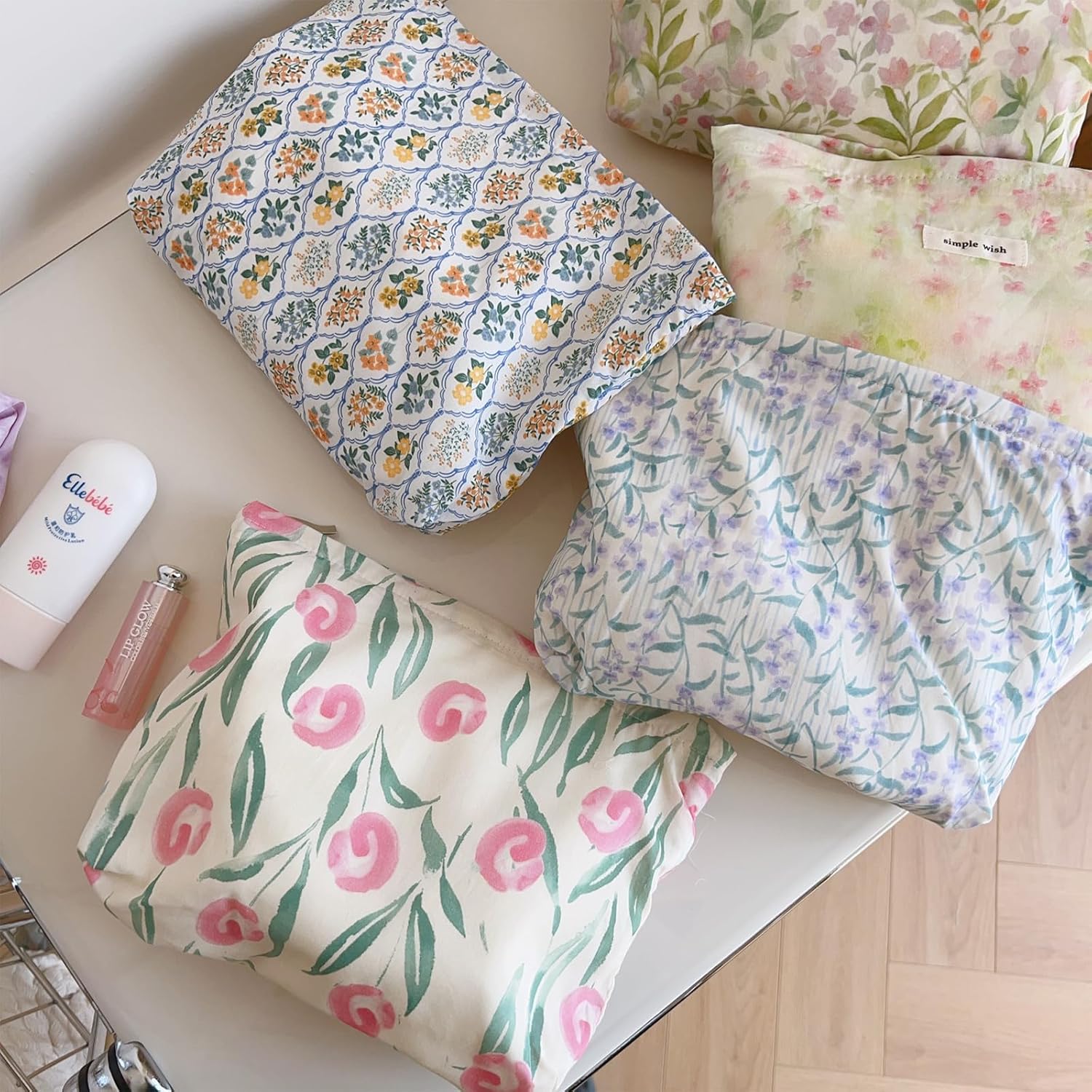 Wudygirl Cute Makeup Bag for Women - Travel Cosmetic Bag with Zipper Makeup Pouch Floral Make up Organizer Handbag Aesthetic (White Tulips)