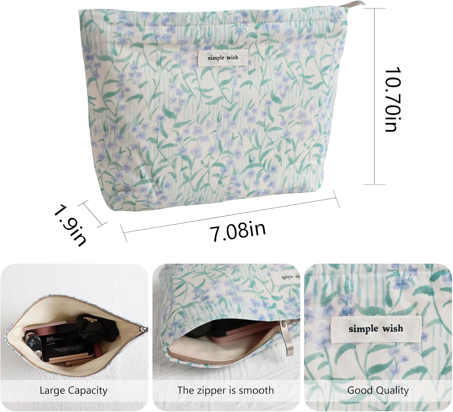 - Perfect Size: Our Wudygirl makeup bag organizer offers plenty of space to store all your makeup essentials, ensuring you have everything you need. Reliable zipper closure keeps your cosmetics safe and prevents any leaks or accidents, giving you peace of mind during travel or daily use.Size:10.75x7.5in.