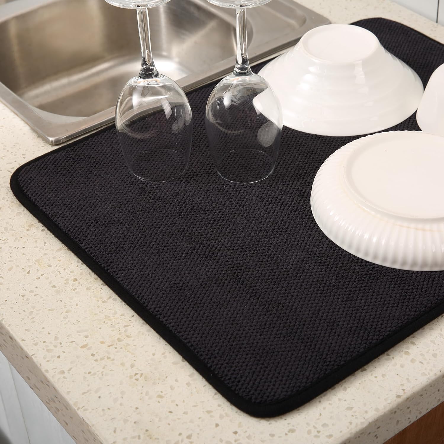 2 Pack Microfiber Dish Drying Mat for Kitchen Counter,Ultra Absorbent Dish Drainer Mat ,Dish Drying Pad , Dish Rack Mat 20×15 Inch (Black)