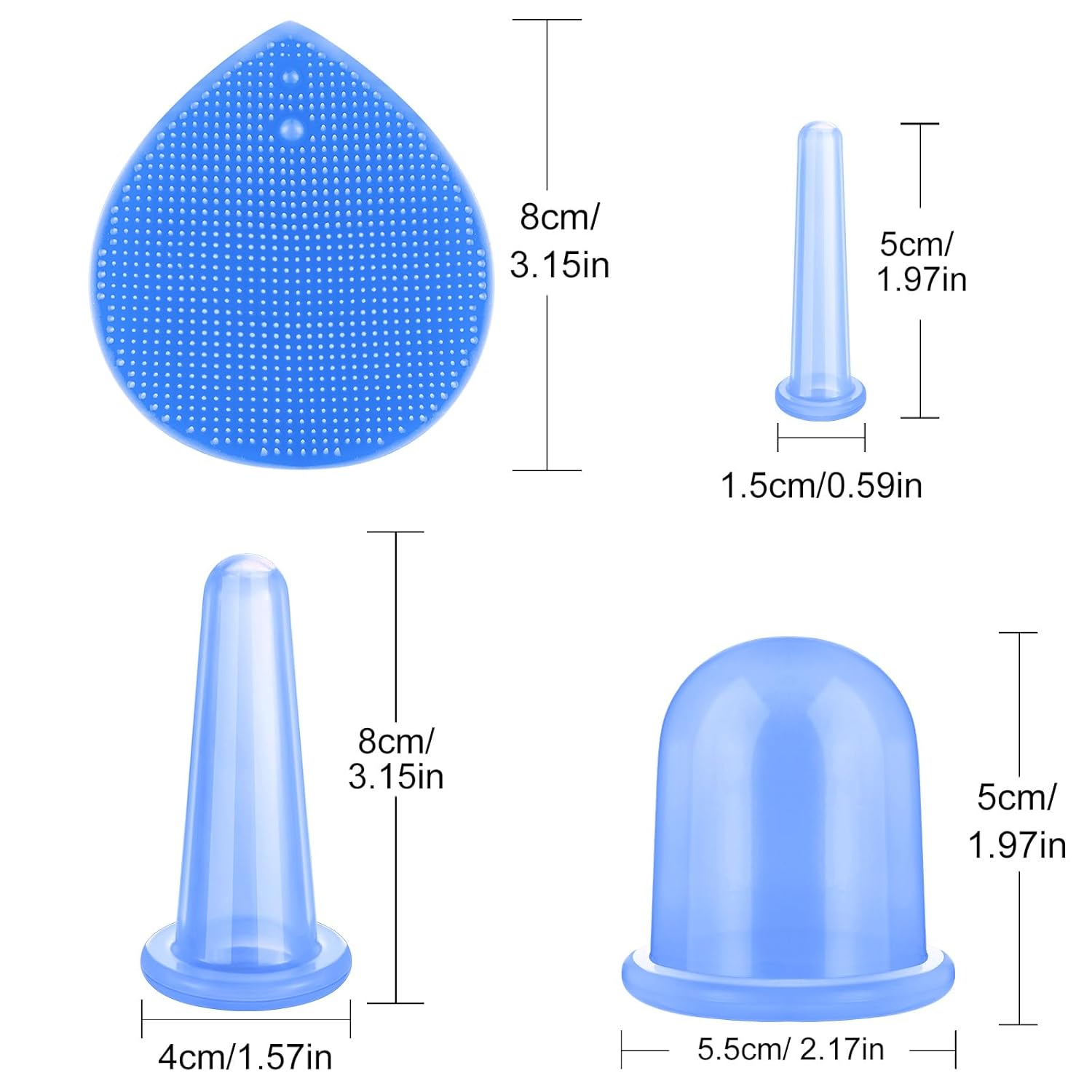 BBTO Silicone Facial Cupping Set, Vacuum Massage Cup Kit for Body, Face, Neck, Back, and Eye, 6 Cups and Exfoliating Brush(Blue)