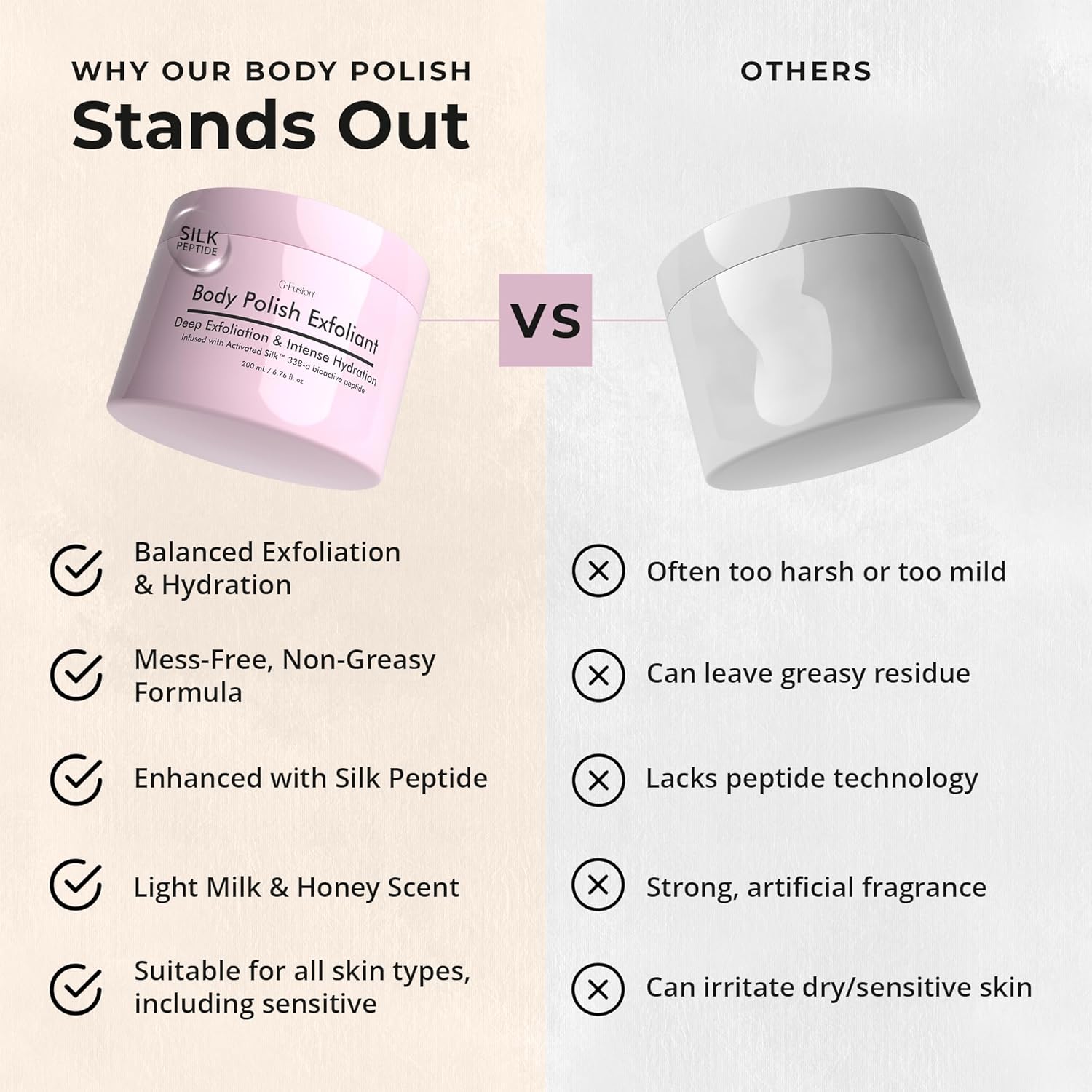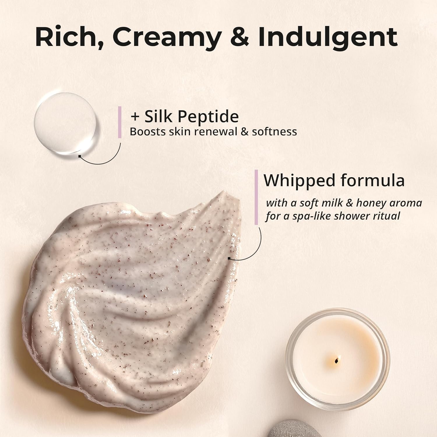 Silk Peptide Body Polish Gentle Exfoliant - Honey & Coconut Body Scrubs with Shea Butter, Exfoliants & Hydrating Oils for Smooth, Glowing Skin – Deep Moisturizing & Radiance Boosting Formula