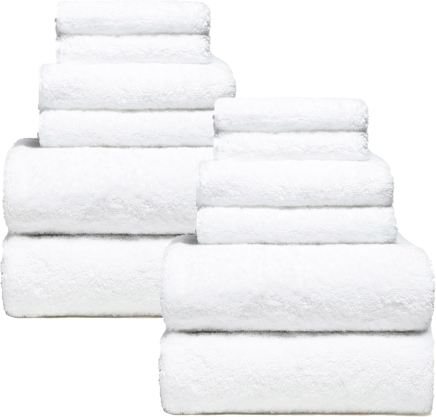 Italic Ultraplush 12-Piece Family Towel Set – Luxury Bath Towels, Hand Towels & Washcloths – Quick Dry, Plush & Absorbent 800GSM 100% Australian Cotton for Bathroom & Spa (White)
