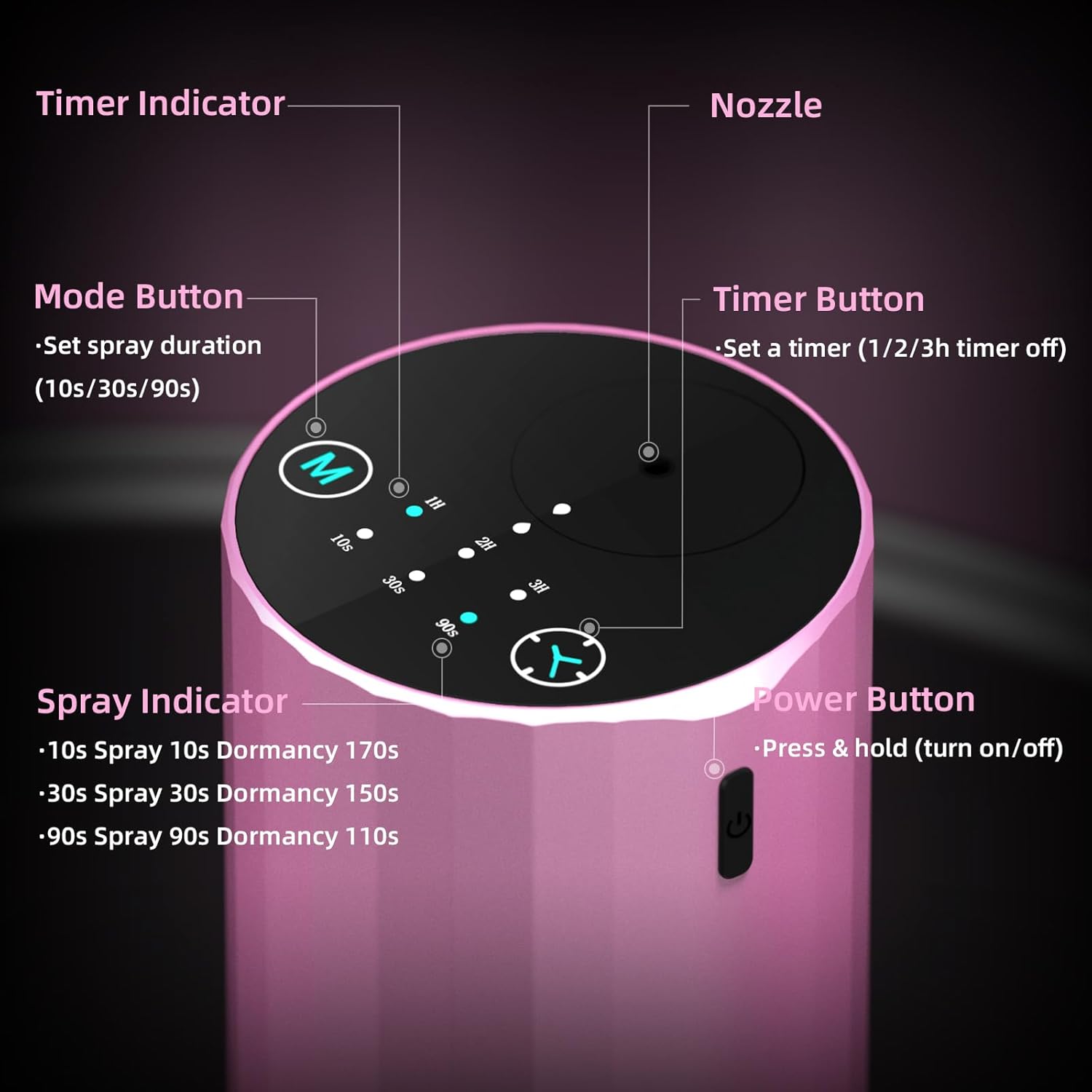 - 【Portable & Versatile — Car, Home, Office, Travel】Smaller than a soda can, this waterless diffuser fits in car cup holders, on desks, or in bags. A cordless, automatic mini device that brings spa-like freshness to your desk, soothing lavender to your bedroom, or an energizing scent on road trips—360° fragrance anywhere