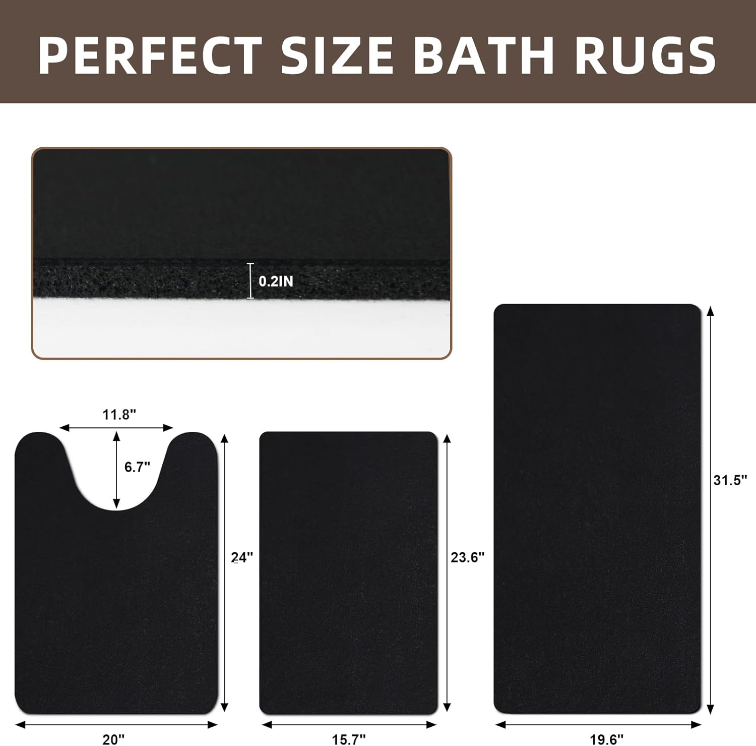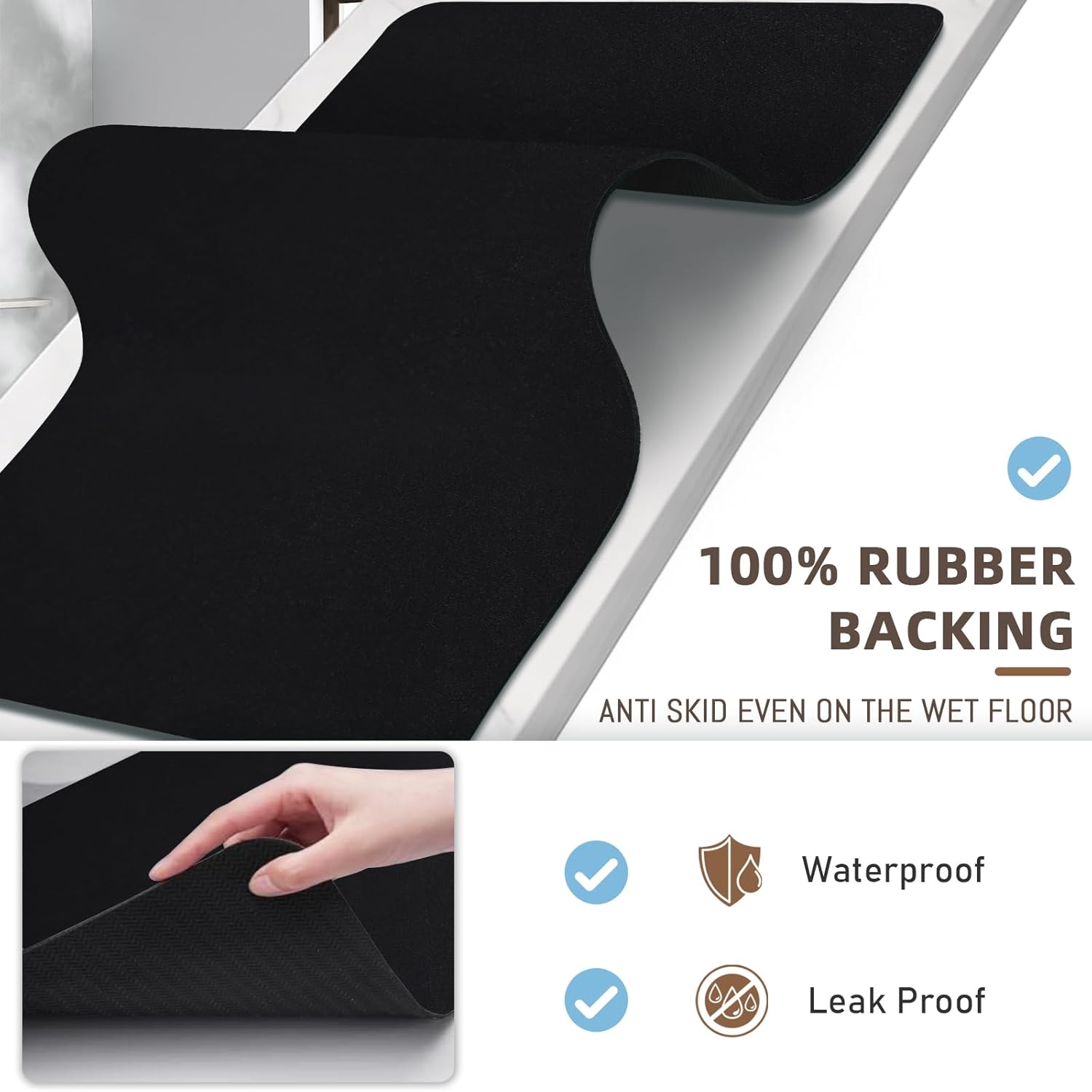Diatomaceous earth bath mat Bathroom Rugs Sets 3 Piece Super Absorbent Quick Dry Bath Mats, Rubber Non Slip Shower Mat and Toilet Mat U Shape, Shower Rug for in Front of Bathtub Shower, Black