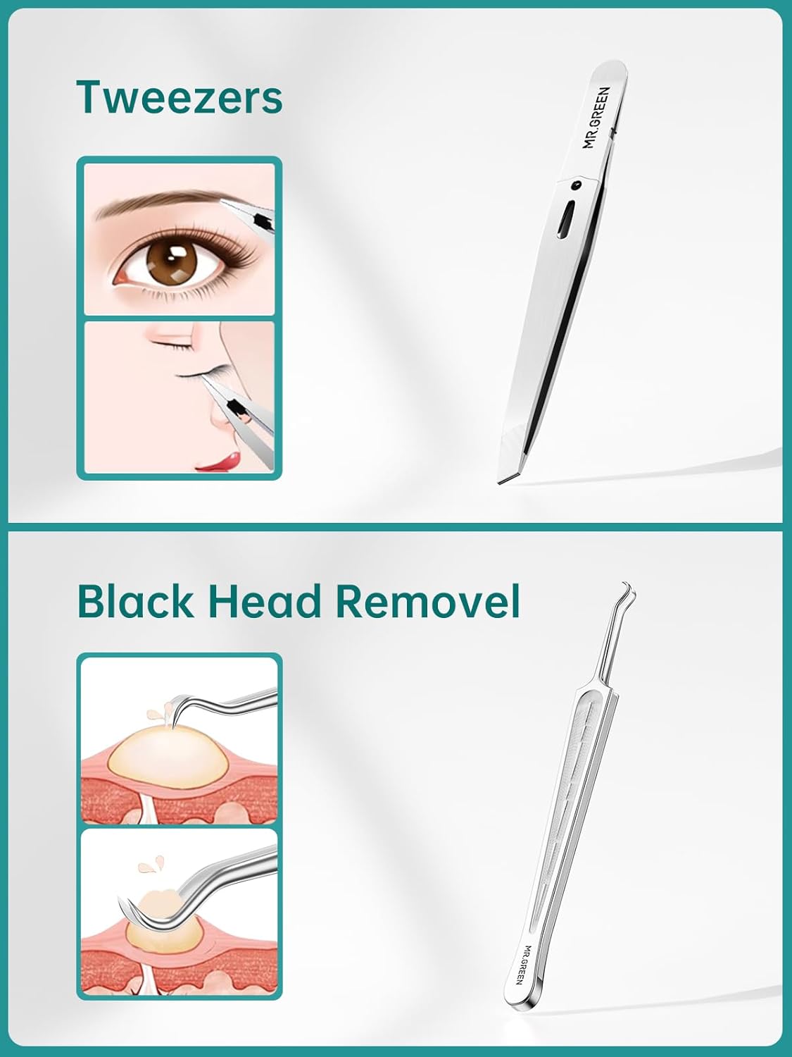 - 9-in-1 Professional Nail Care Kit Includes 9 essential nail care tools: Anti-splash Large Nail Clipper, Anti-Splash Slanted Nail Clipper, Cuticle Trimmer, Nail File, Ear Pick, Cuticle Scissors, Tweezers, Cuticle Pusher, Blackhead Removal Tool. Designed to meet your daily needs for hand, foot, and facial grooming—ideal for both men and women.