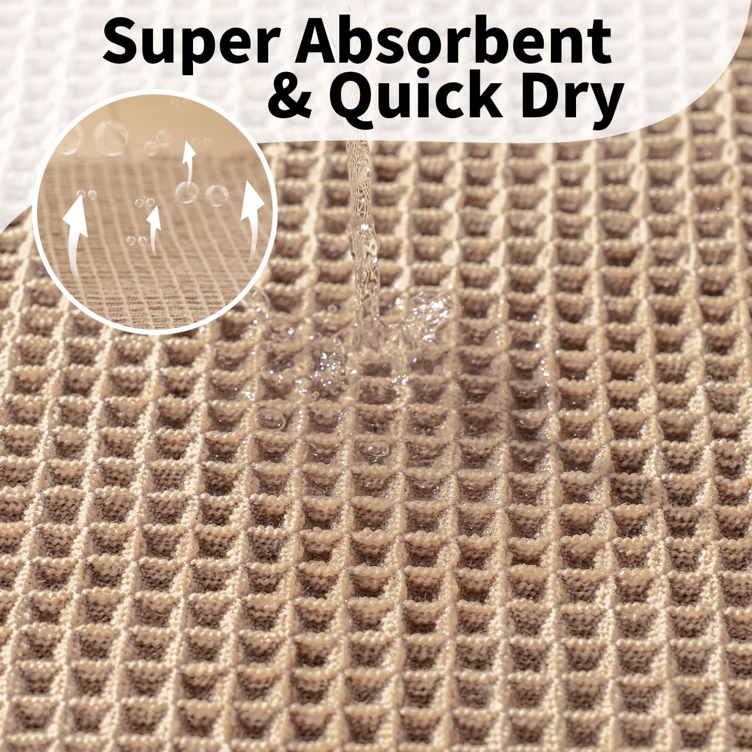 Waffle Bath Mat - Boho Bathroom Rugs Non Slip Washable, Super Absorbent & Quick Dry, Soft Bath Mat Farmhouse Bathroom Decor, 24'' x 48'', Khaki
