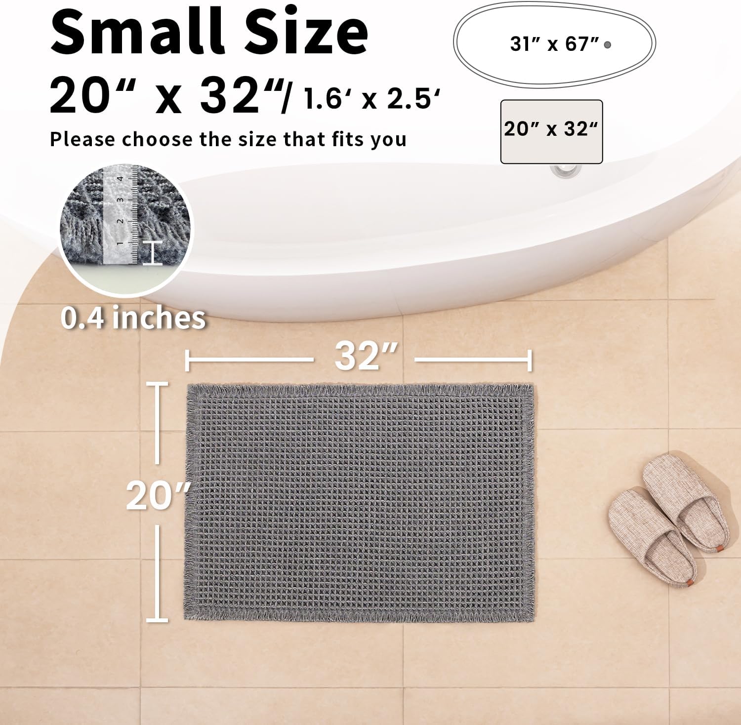 Waffle Bath Mat - Boho Bathroom Rugs Non Slip Washable, Super Absorbent & Quick Dry, Soft Bath Mat Farmhouse Bathroom Decor, 20'' x 32'', Dark Grey