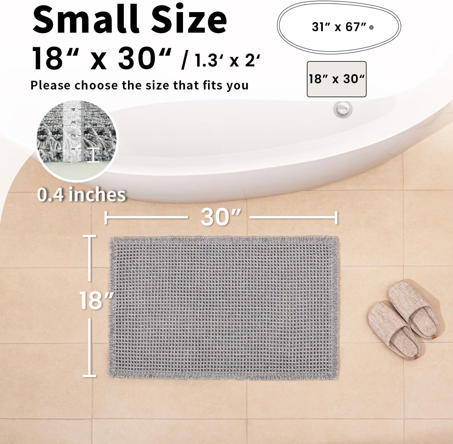 Waffle Bath Mat - Boho Bathroom Rugs Non Slip Washable, Super Absorbent & Quick Dry, Small Bath Mats Farmhouse Bathroom Decor, 18'' x 30'', Light Grey