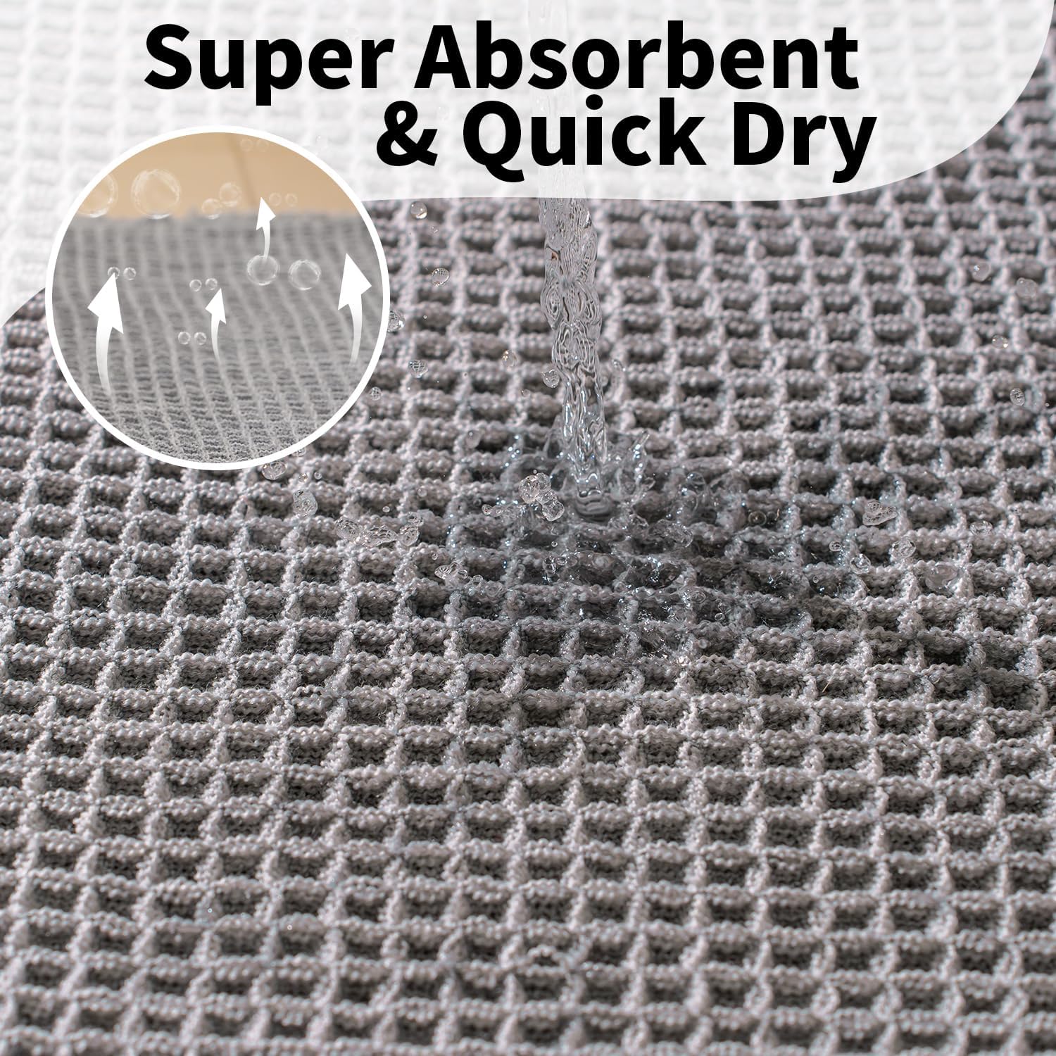 - Super Absorbent & Quick Dry: Experience the power of our waffle bathroom rug! Its unique weave acts like a moisture magnet, quickly absorbing water and drying fast. Keeping your bathroom dry and comfy