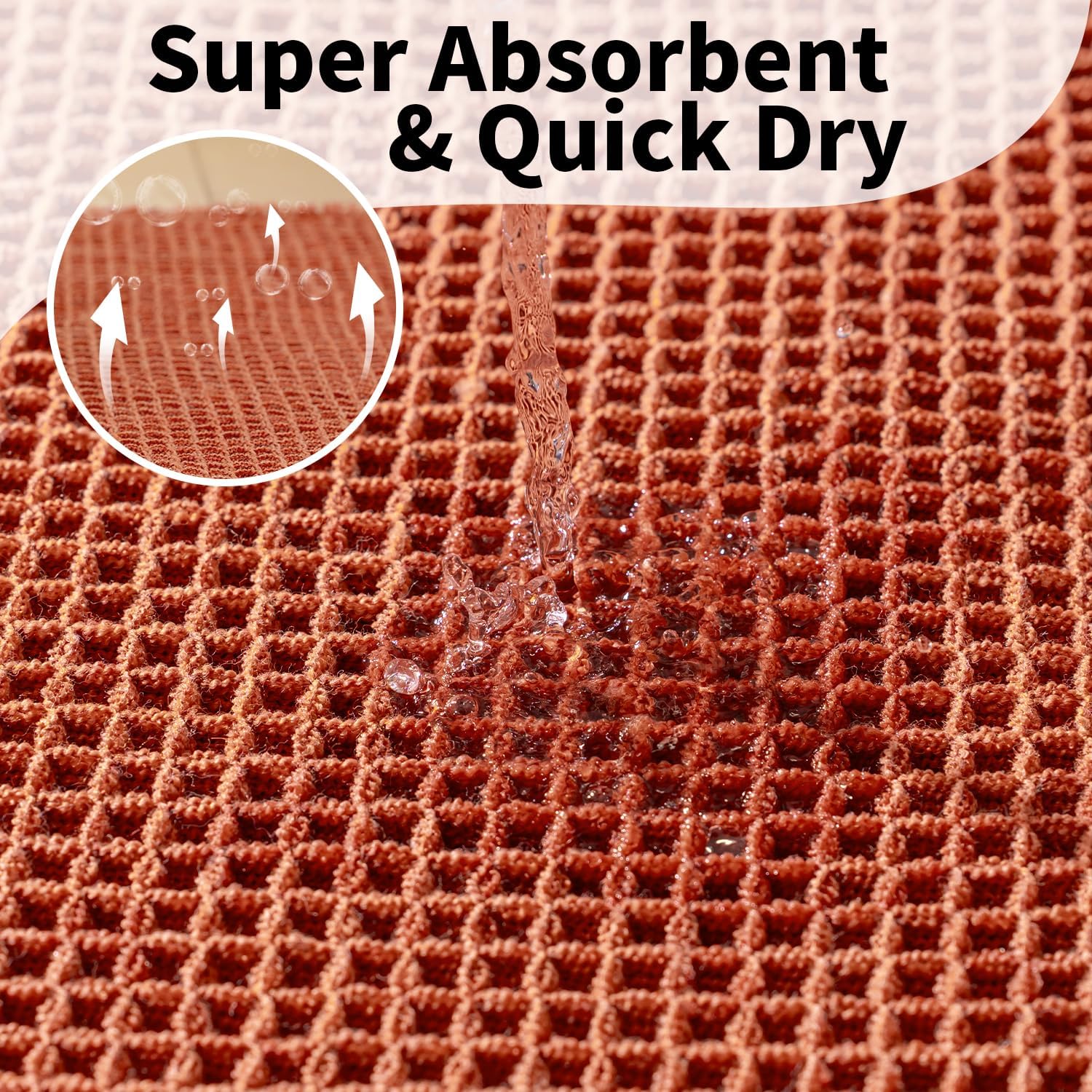 - Super Absorbent & Quick Dry: Experience the power of our waffle bathroom rug! Its unique weave acts like a moisture magnet, quickly absorbing water and drying fast. Keeping your bathroom dry and comfy