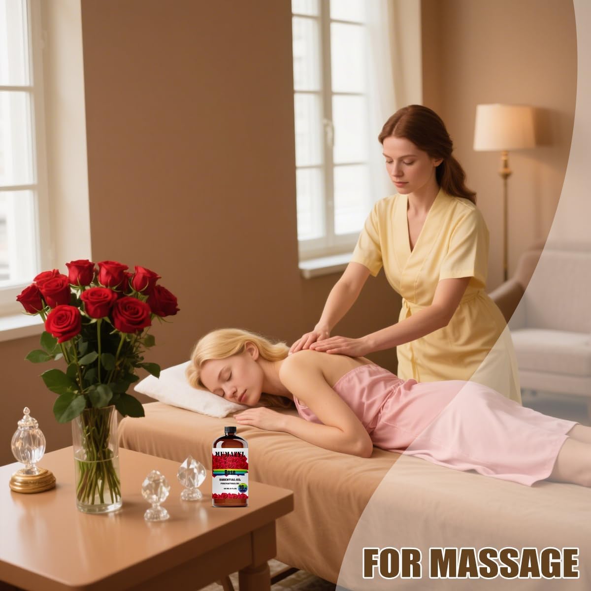 - Featured Glass Bottle: Each Rose essential oil is bottled in 16 Fl Oz 480ML amber glass bottle to help keep the Rose oil lasting. (16 Oz without glass burette but with flow control stopper x1)