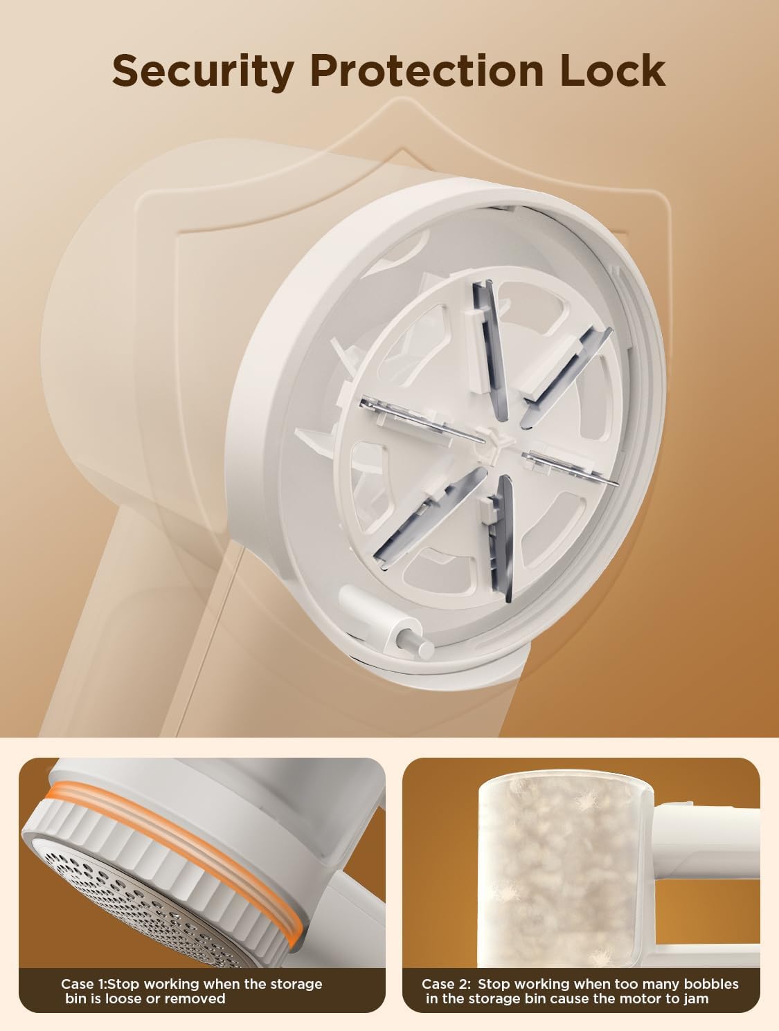 - Double Protection with Suction Device: The upgraded detachable bionic honeycomb stainless steel mesh cover, designed with a slight arc, securely fits clothes while maintaining a safe distance from the cutter head. The lint remover for clothes preserves fabrics and gives peace of mind.