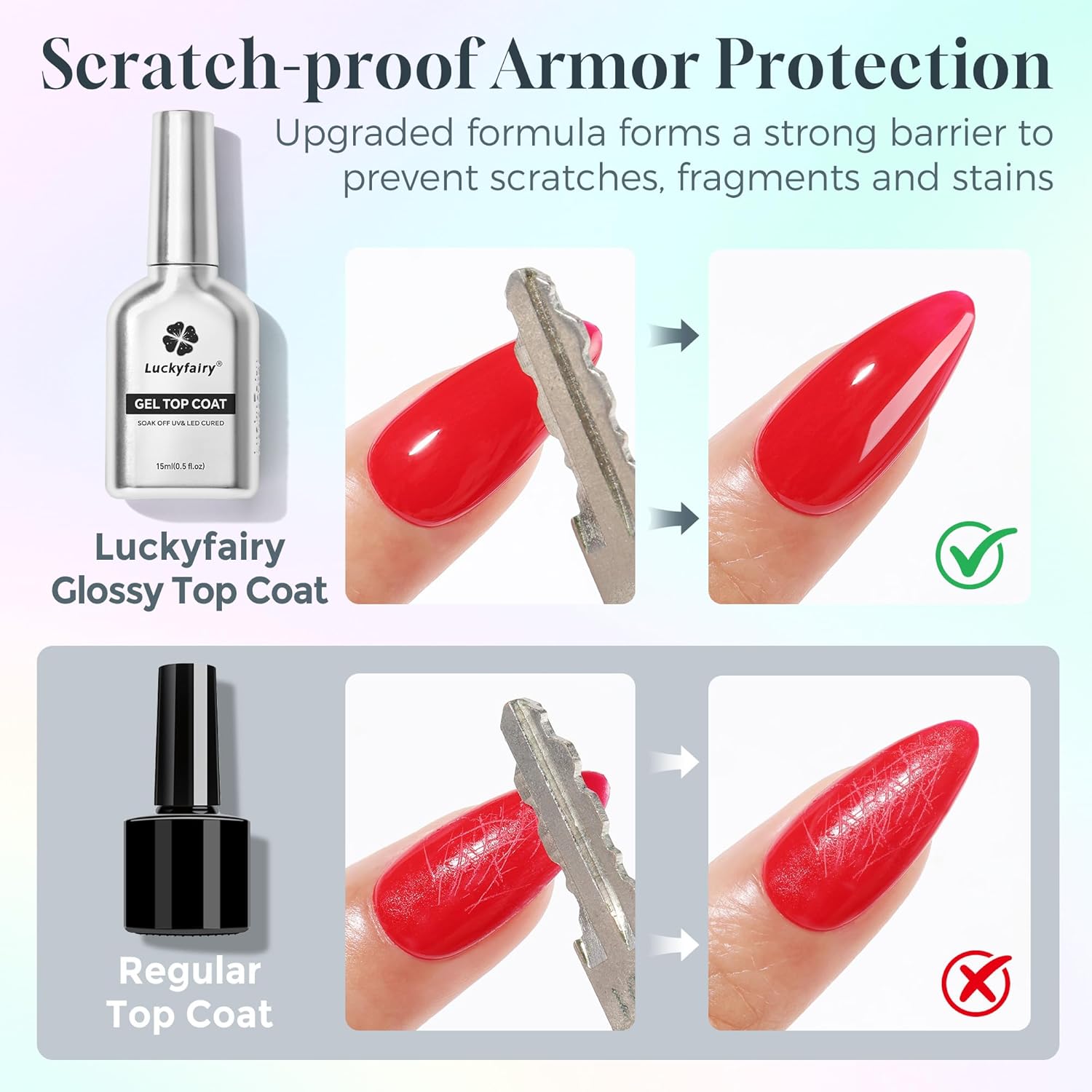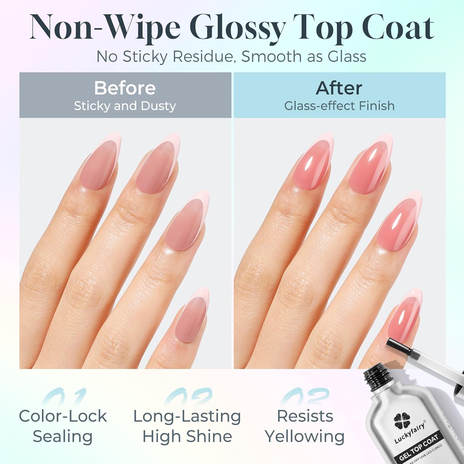 - No-Wipe Glossy Gel Top Coat: Seal your manicure with diamond-shine armor that protects against scratches and chips. Keeps nails brilliantly shiny and looking fresh for 28+ days. The upgraded formula intensifies color and magnifies shine, leaving zero sticky residue after curing