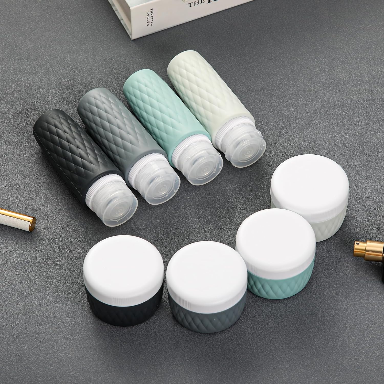 - 【8-Piece Portable Travel Size Toiletries Set】 Includes 4 silicone squeeze bottles 3oz(90ml) and 4 silicone cream jars3oz(90ml), ideal for lotions, creams, foundation, shampoo, body wash and more.